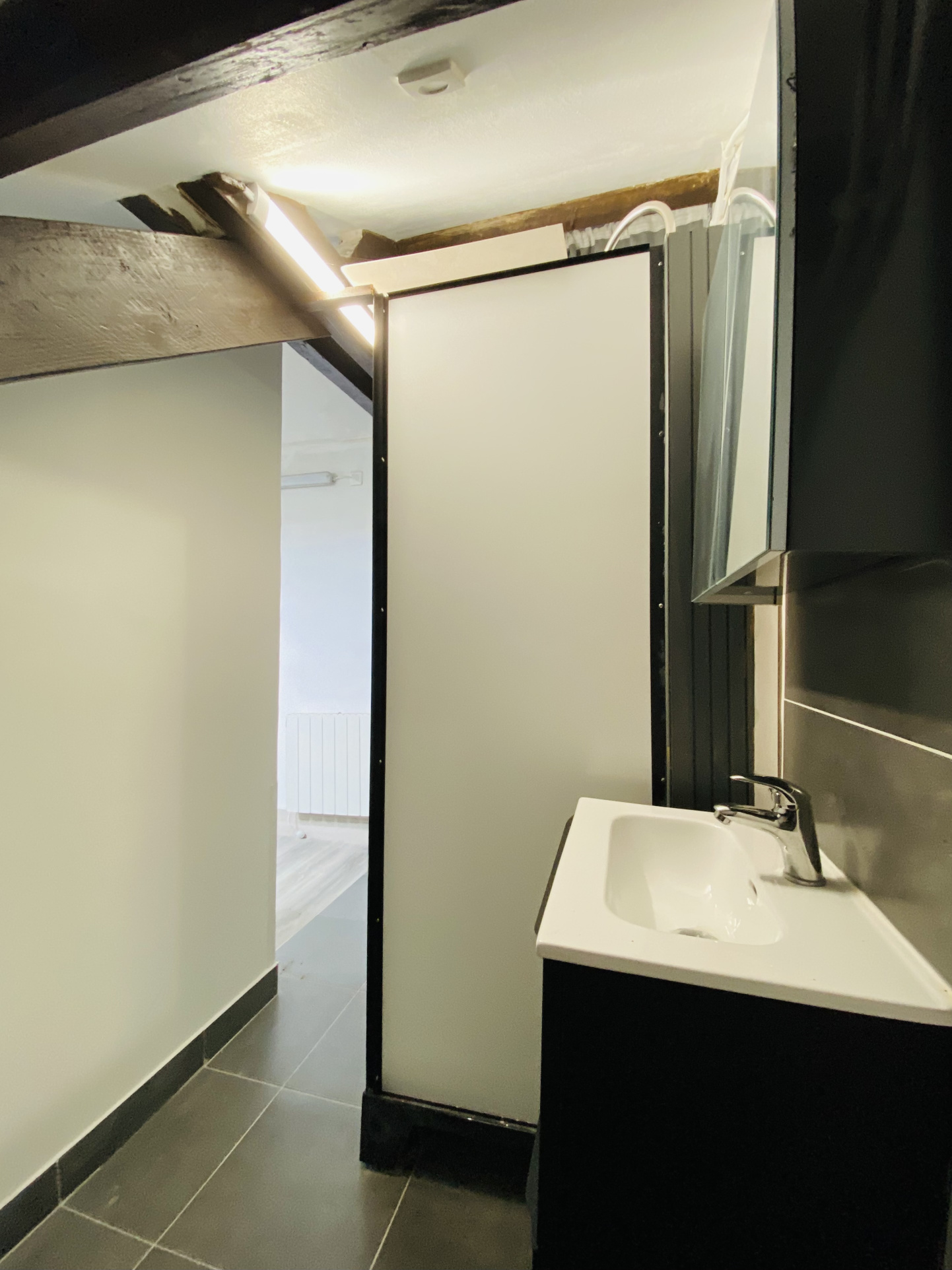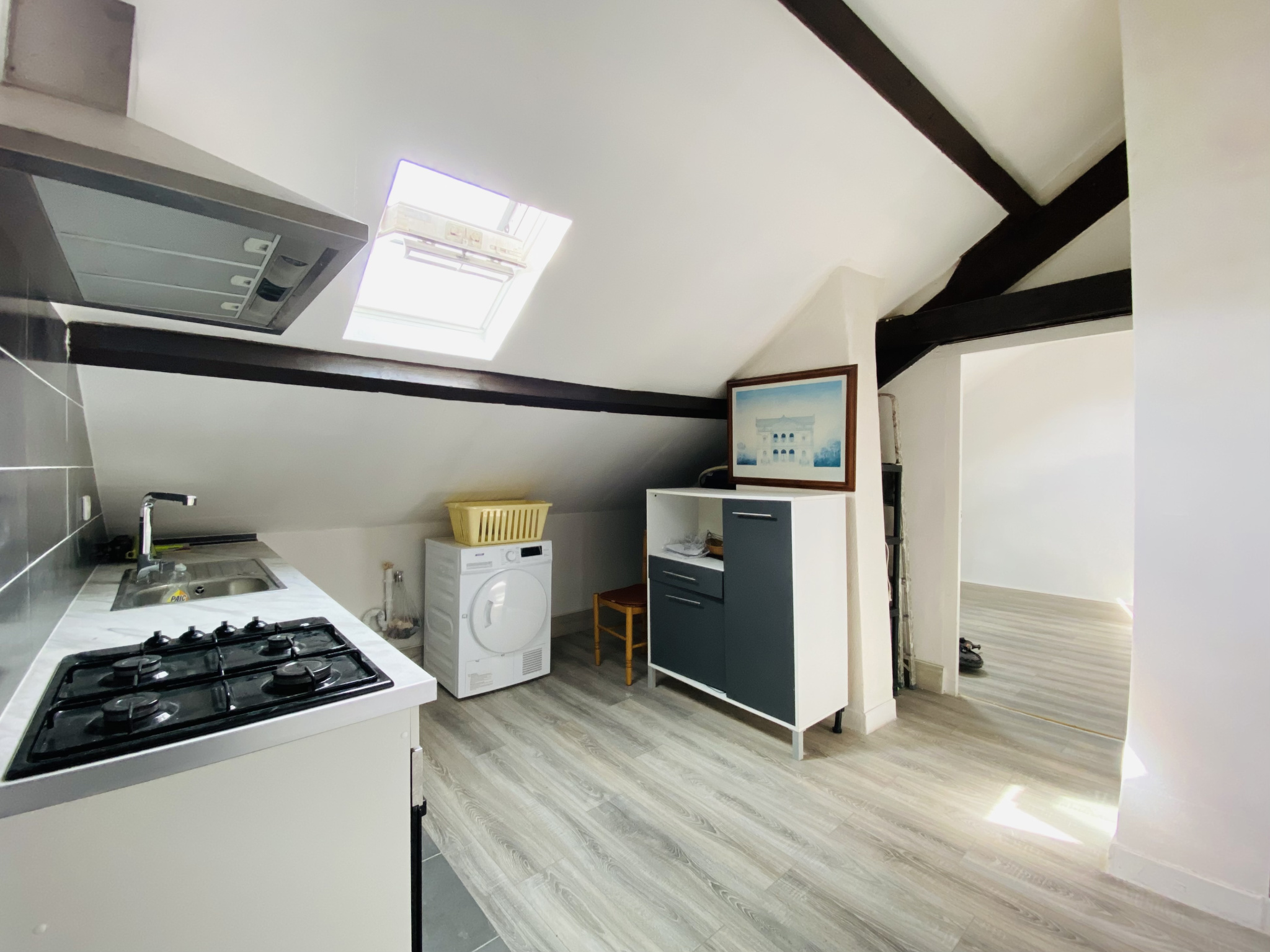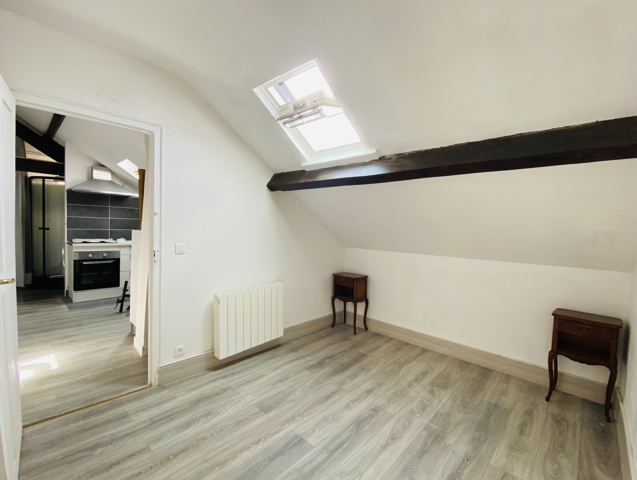 Au deuxième étage, un studio indépendant d’environ 23 m2 se compose d’un espace cuisine ouvert sur le salon, d’une chambre ainsi que d’une salle d’eau avec WC.