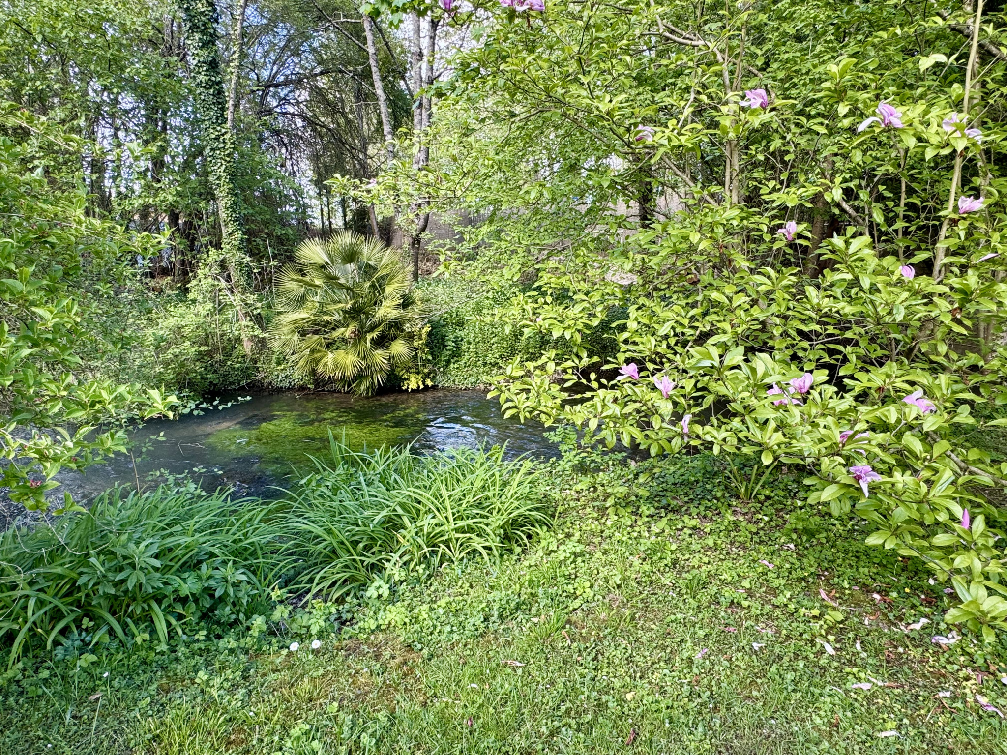 Superficie du terrain : 1 900 m2 environ, entièrement clôturé, ombragé plein de charme, donnant accès au ponton qui mène à la presqu'île et agrémenté d’arbres fruitiers.