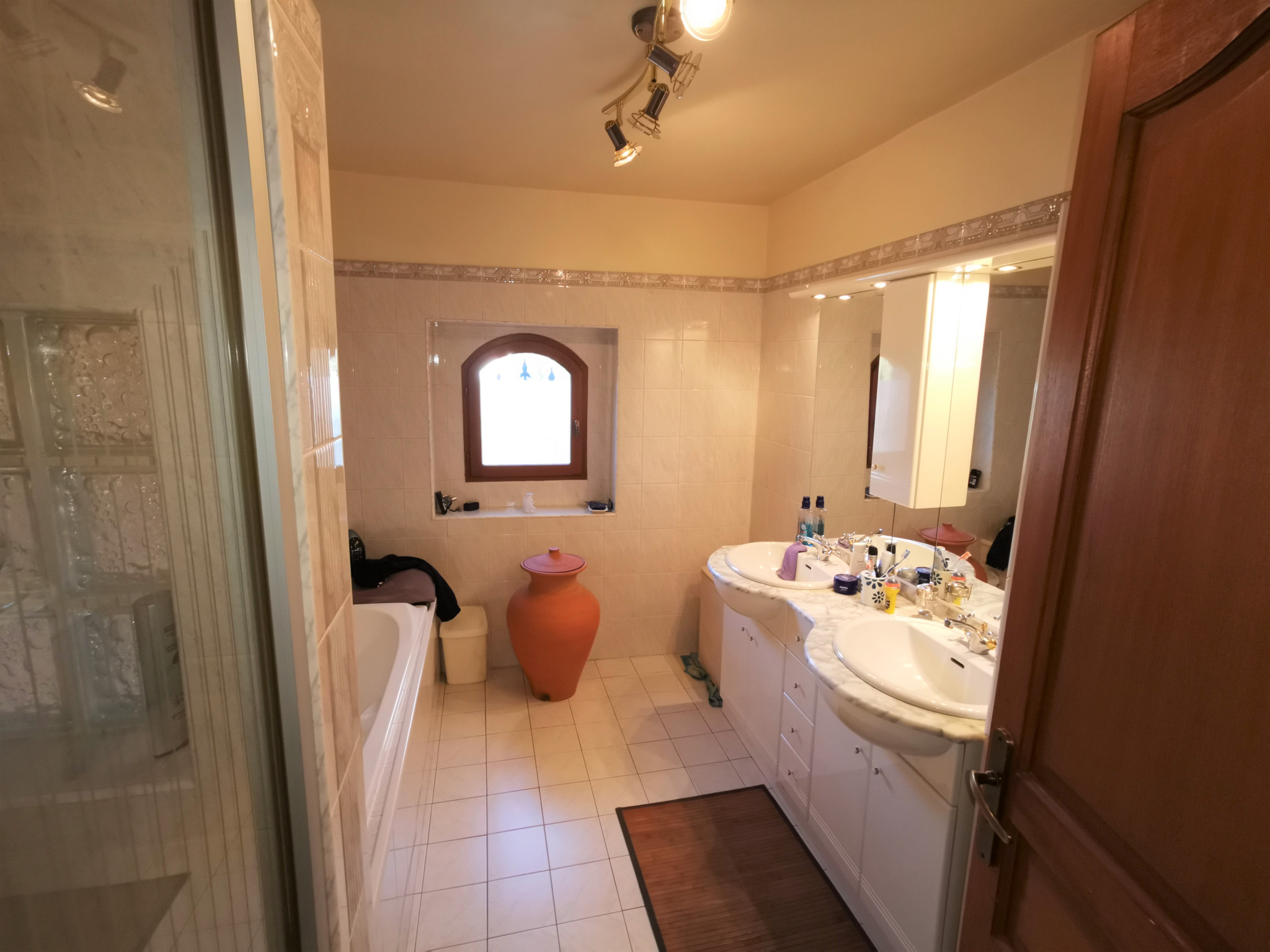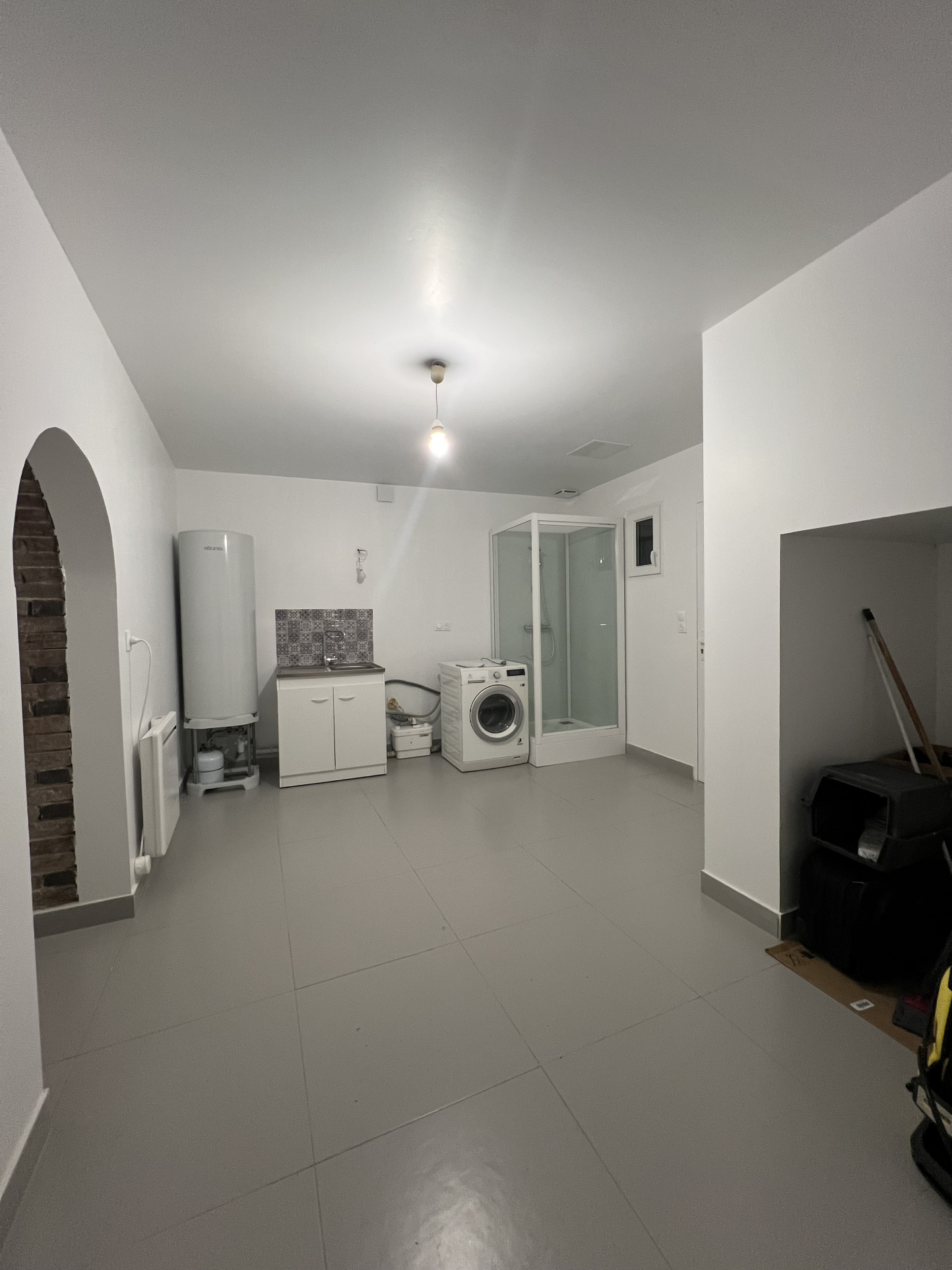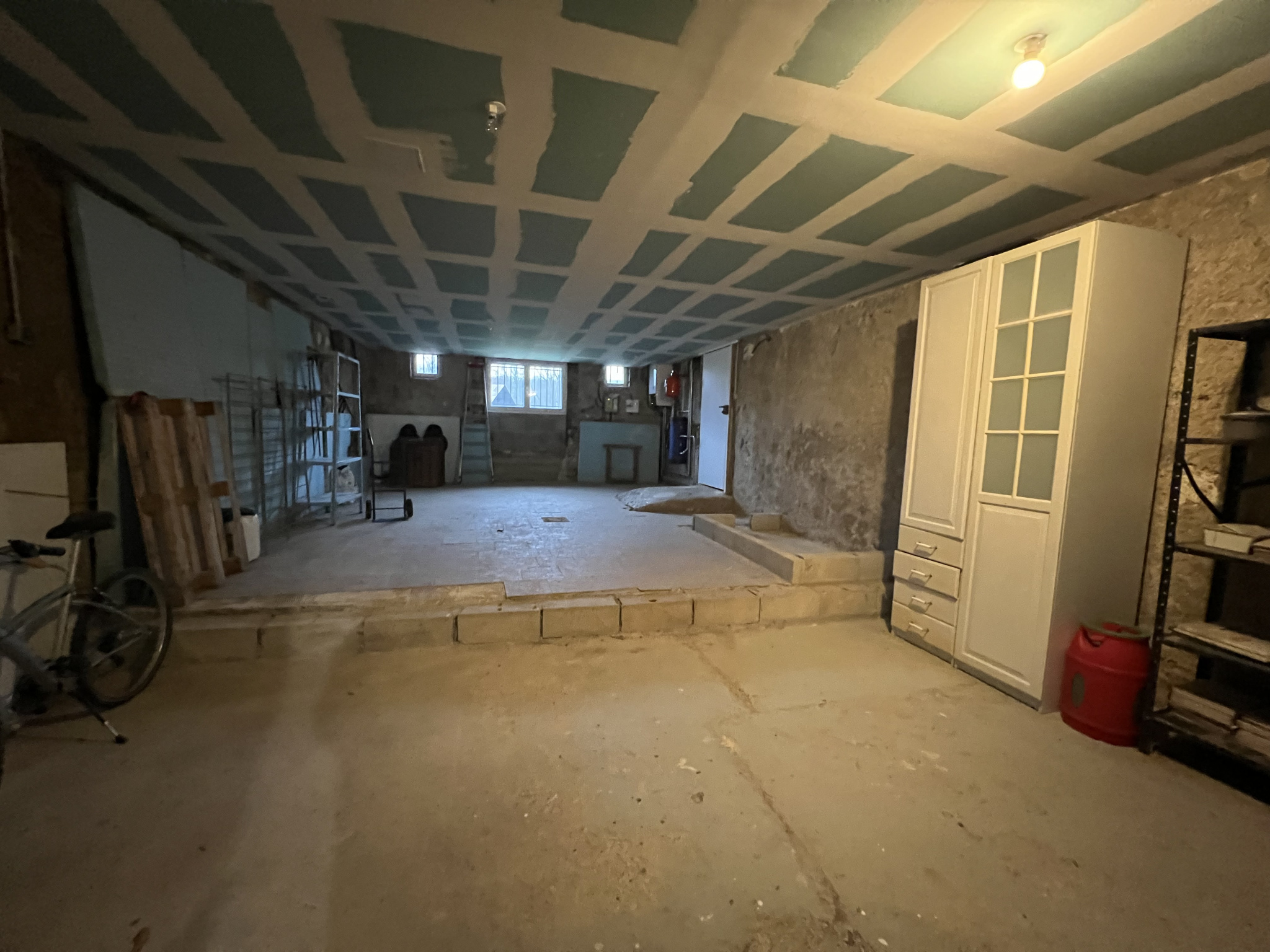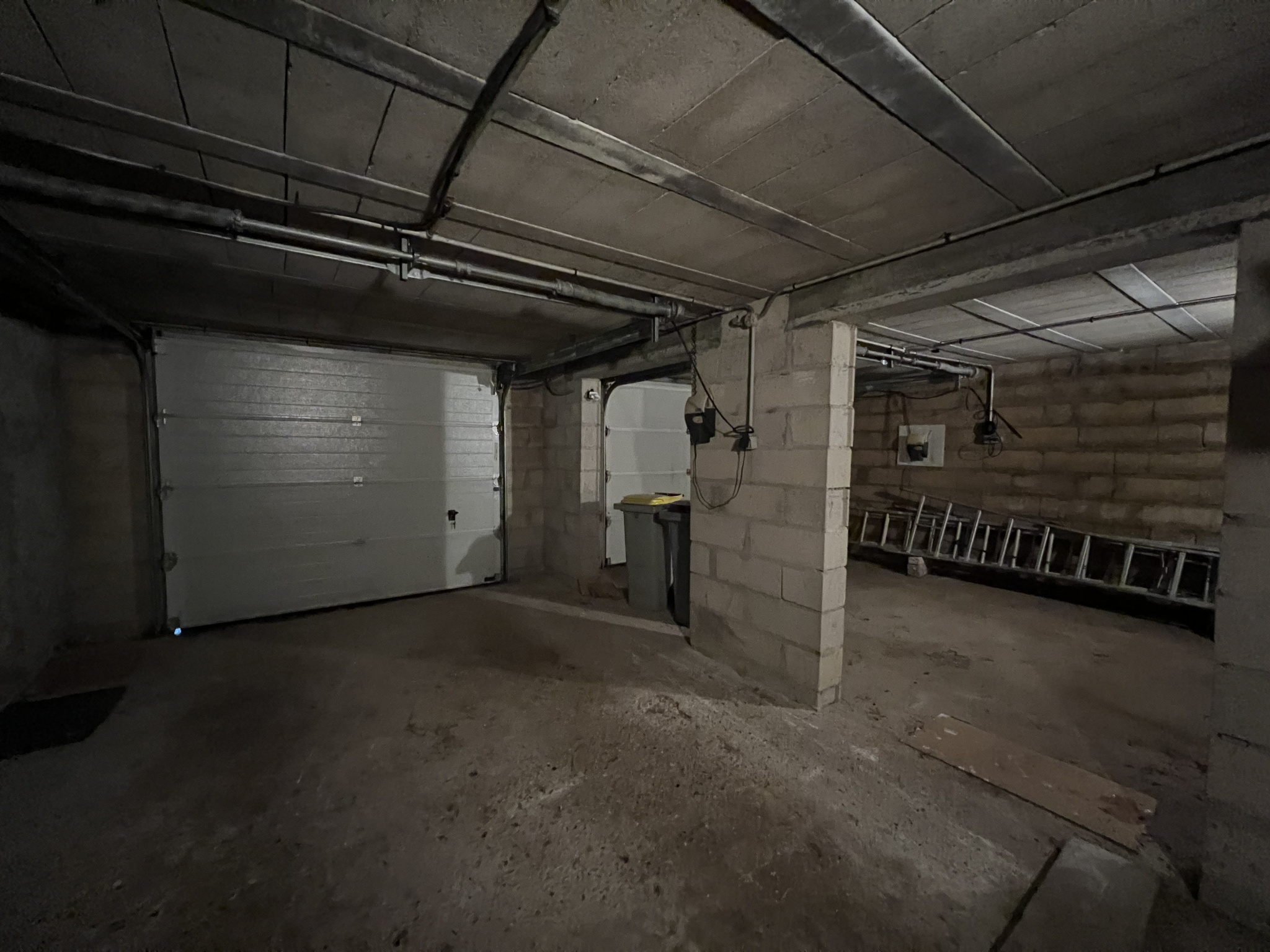 Au niveau inférieur, nous trouvons la buanderie, un espace bricolage et deux garages.