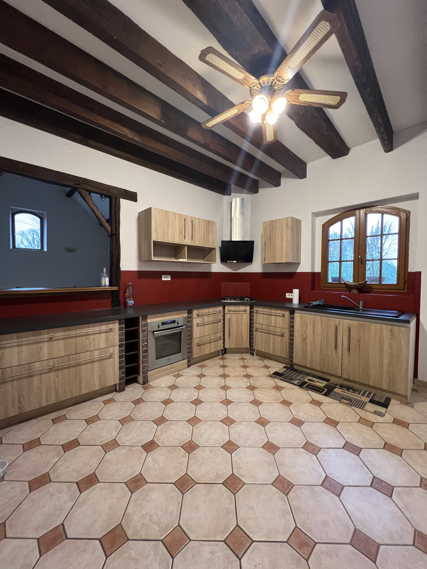 Son entrée nous dirige vers un vaste salon/séjour cathédrale avec cheminée insert, une cuisine d'environ 13 m2, trois chambres, un dressing, une salle de bains avec baignoire et douche, un WC.