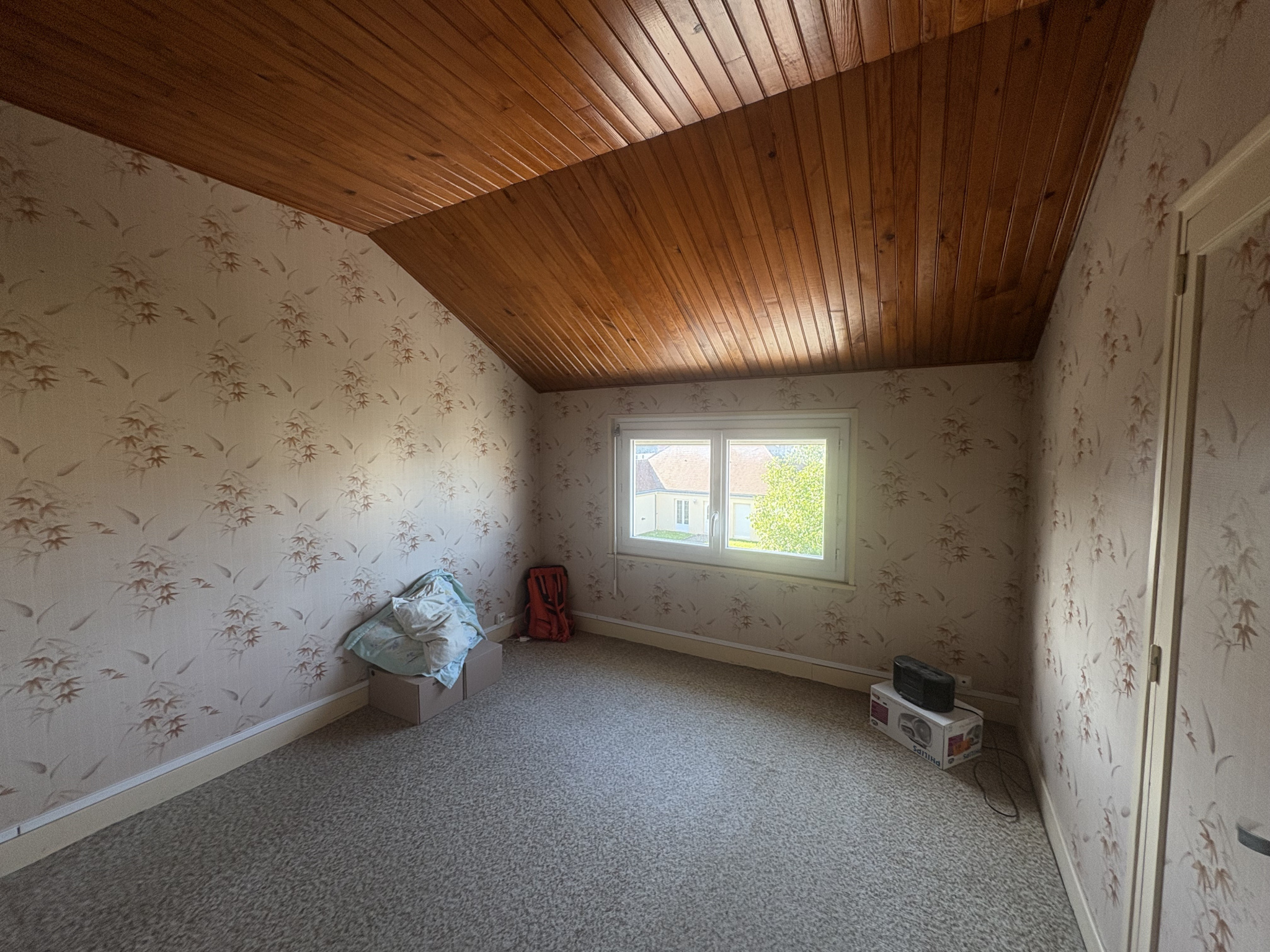 A l'étage, palier, deux chambres, 1 dressing et deux coins mansardés.