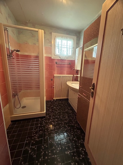 Elle se compose d'une entrée avec placard, un salon-séjour avec cheminée à foyer ouvert, ainsi qu'une cuisine fermée, aménagée et équipée. Vous disposerez également de 2 chambres et d'une salle d'eau, un wc.