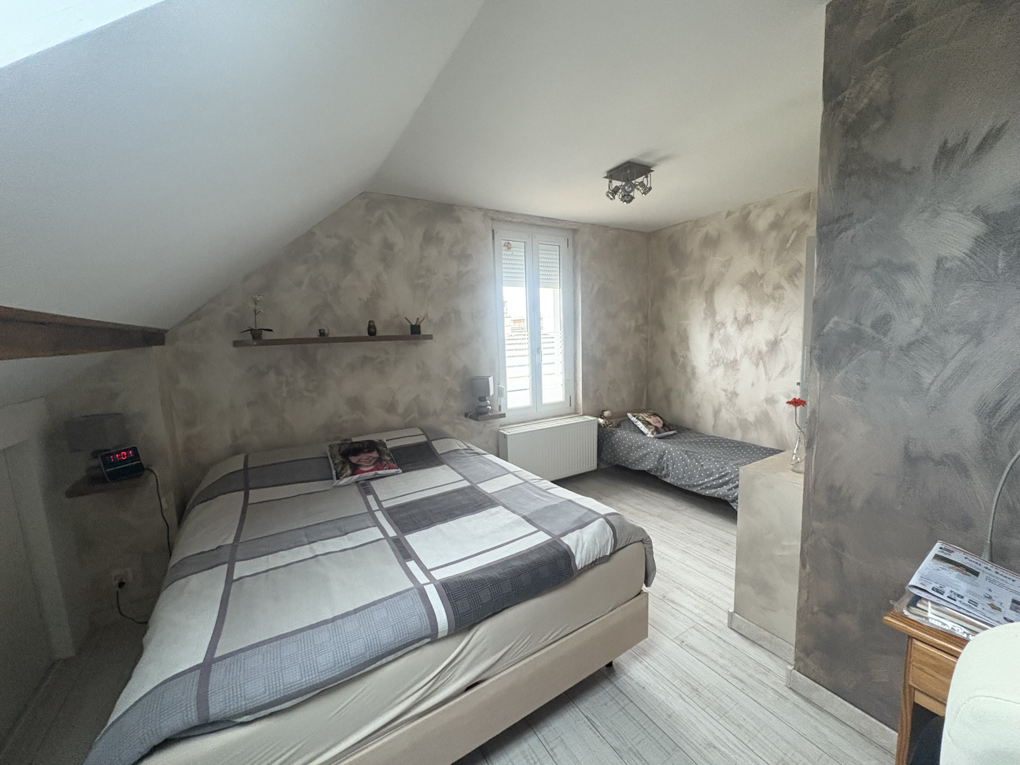 A l'étage, vous trouverez deux belles chambres, un bureau, un dressing et un WC pour un confort optimal.