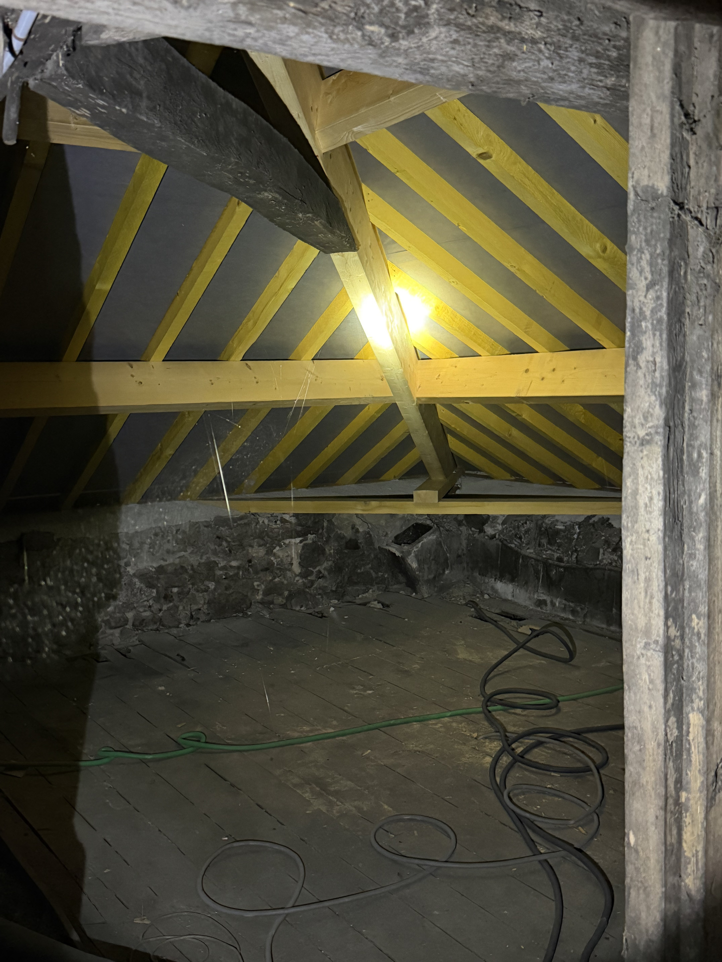 Aujourd’hui, la maison développe 80,14 m2 habitables, mais bénéficie d’un potentiel total d’environ 260 m2 de surface de plancher, répartis sur deux niveaux. Un grenier aménageable de 112,64 m2 vient compléter cet ensemble, offrant une capacité d’extension remarquable.