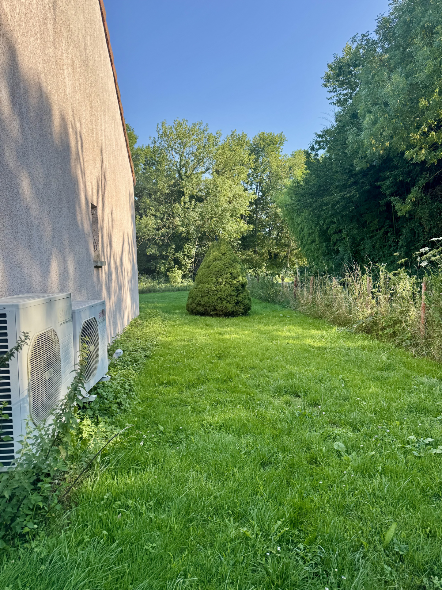 Terrain de 1500 m2 clôturé et arboré avec soin. Ce pavillon n’a qu’un seul voisin, offrant un environnement calme et dégagé.