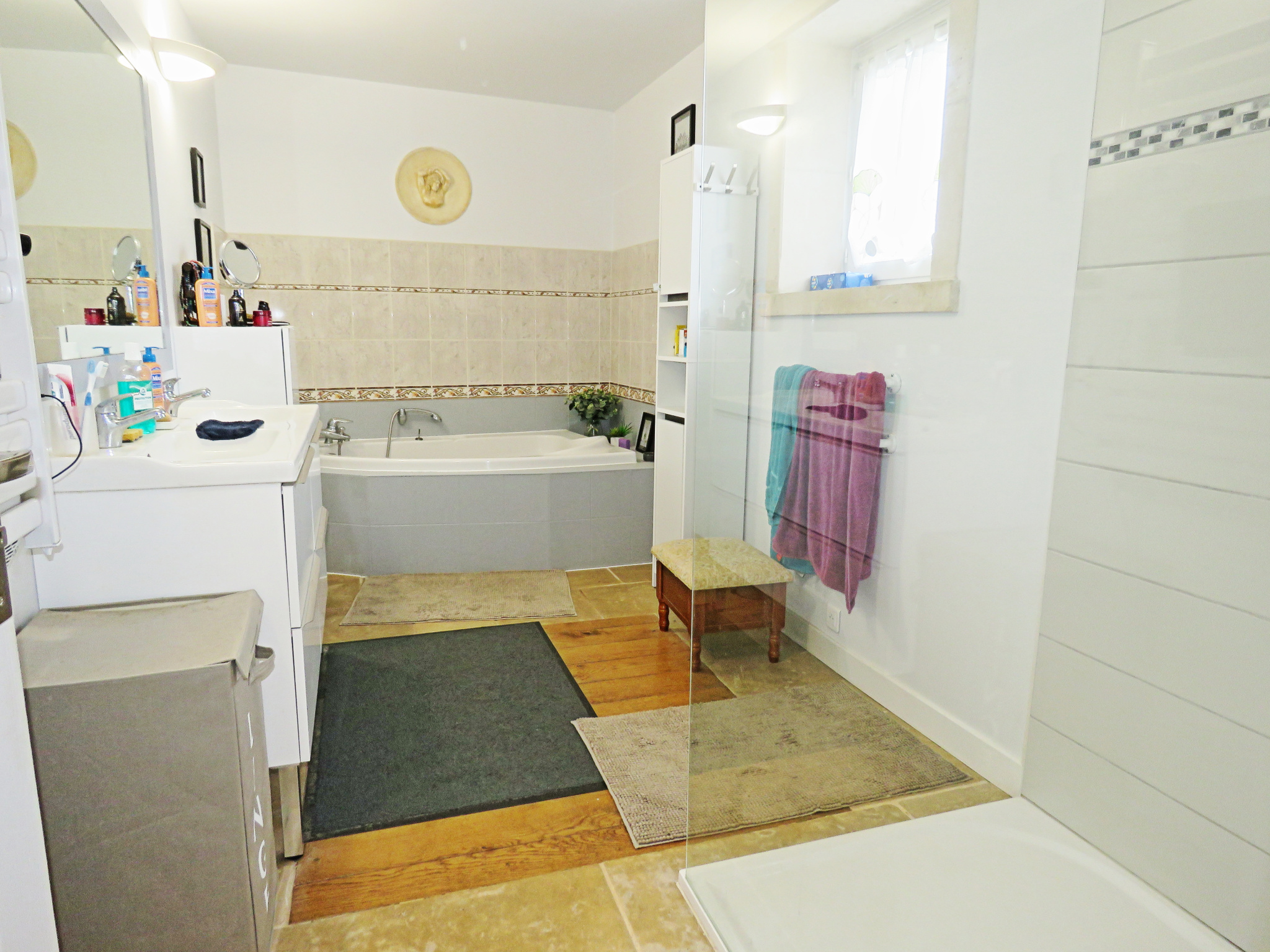 A l'étage : Pallier desservant 3 chambres (dont une suite parentale avec coin salle d'eau et dressing) et un WC.