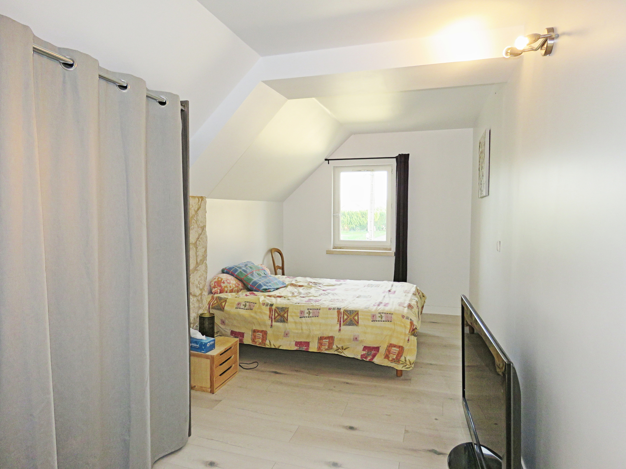 Tous commerces à 5 km, transport scolaire à 50 mètres. Double vitrage PVC, chauffage électrique, poêle à bois, fibre optique, fausse toutes eaux conforme. Un portail électrique sera installé.