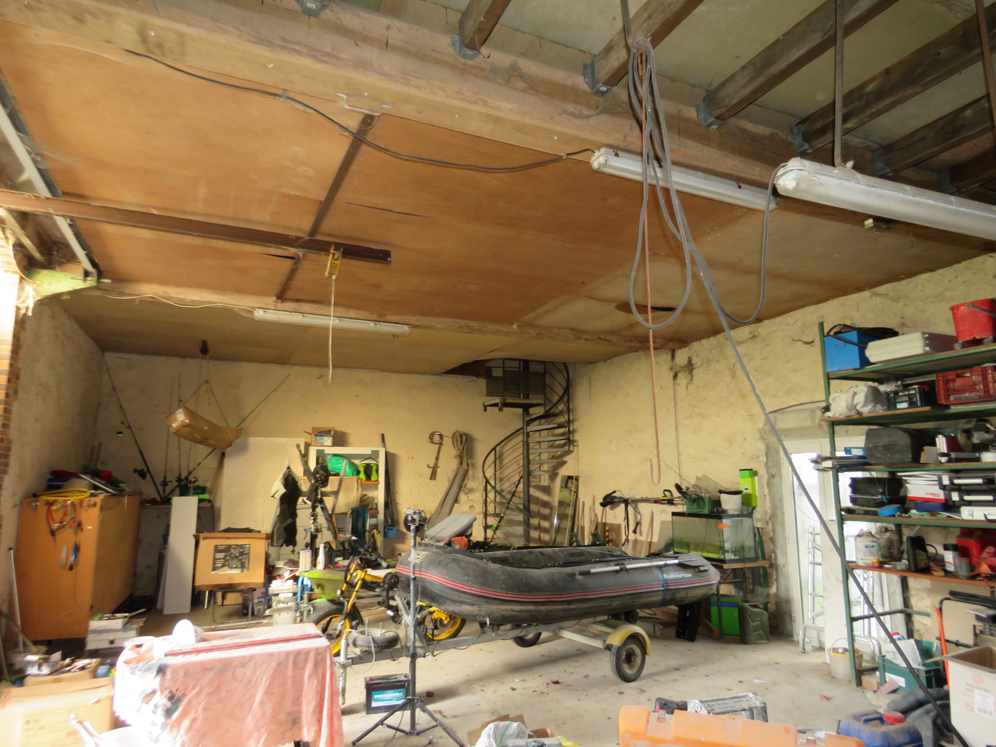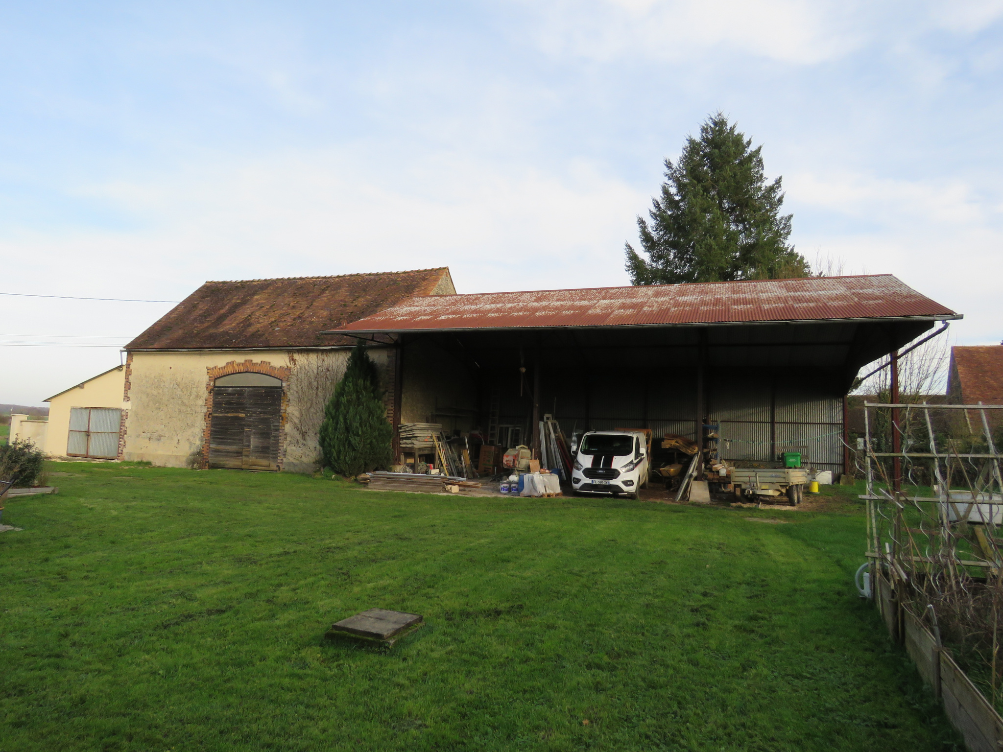 Sur le généreux terrain clos de 1913 m2 sont édifiés : Un garage, une grange d'environ 85 m2 au sol aménageable sur 2 niveaux et un hangar de 160 m2 environ.