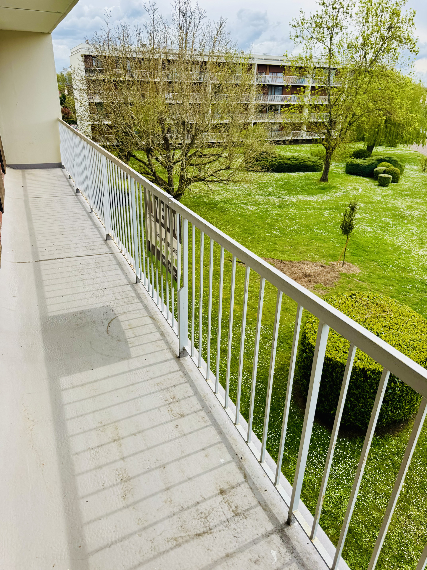 Il est d´une superficie d'environ 90m2, il est composé : d’une entrée ouvrant sur la cuisine aménagée et le salon/séjour donnant accès au balcon (10m2), suivi d'un couloir avec un grand placard, 4 chambres dont 2 chambres ouvrant directement sur le balcon, une salle de bain et un WC. Une cave (13m2) et une place de parking privée goudronnée récemment avec BIP.