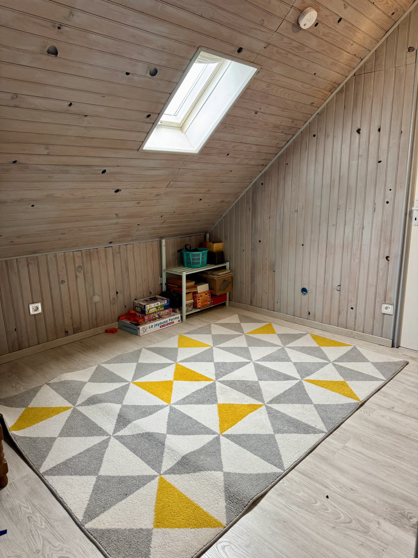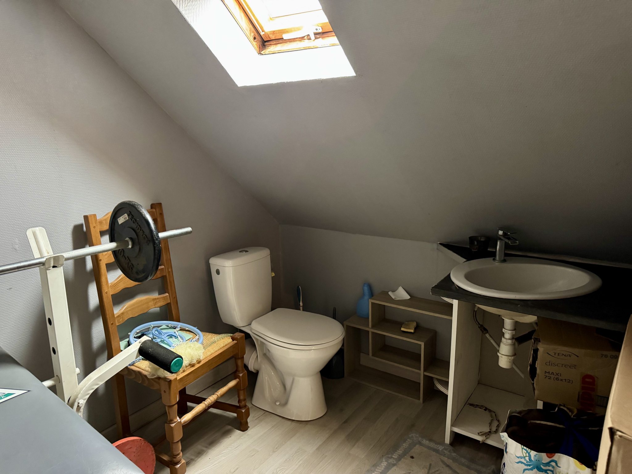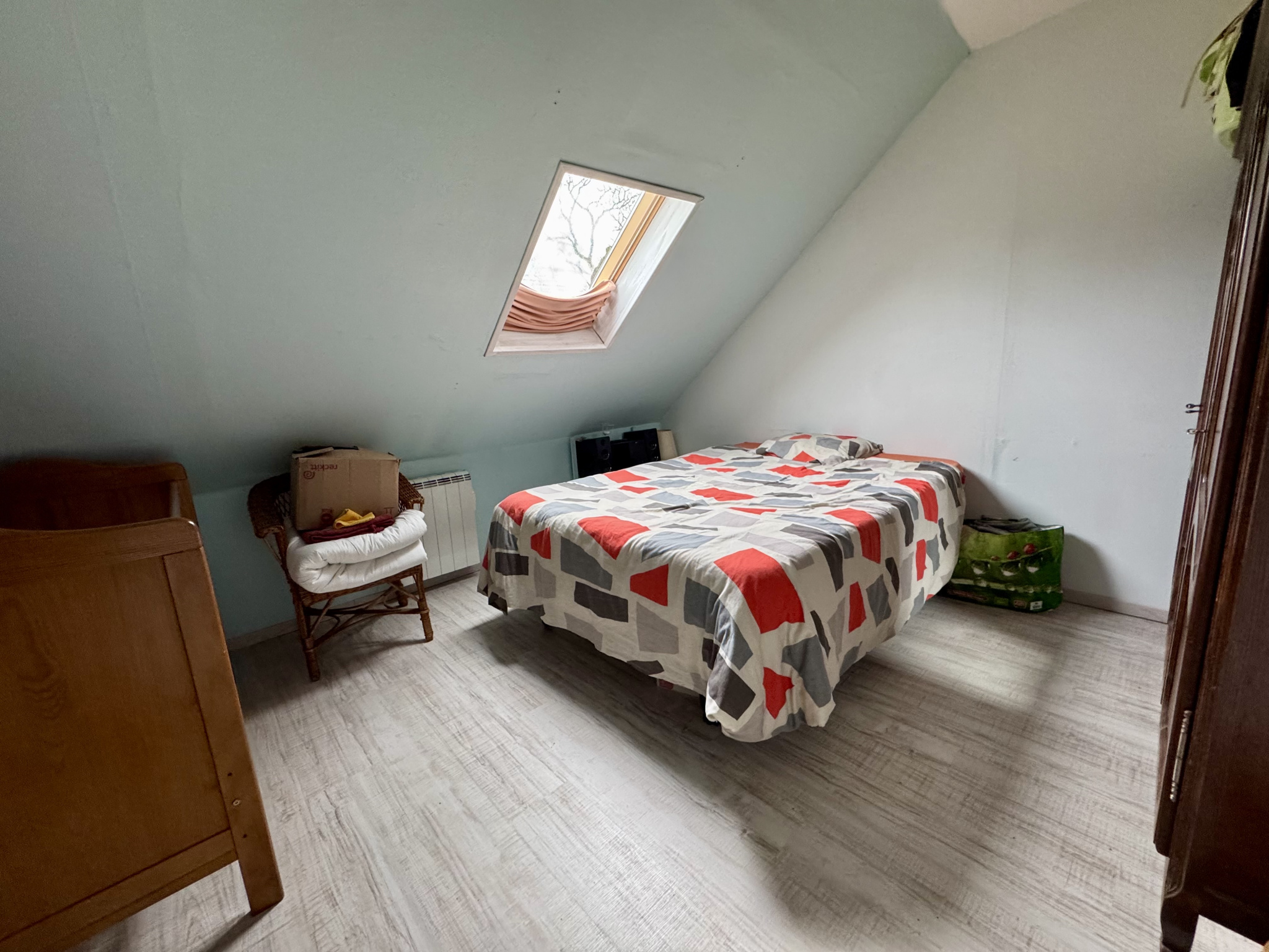 À l’étage, un grand palier pouvant faire office de bureau dessert deux chambres supplémentaires, dont une spacieuse de 28 m2 pouvant être divisée selon vos besoins. Un WC complète cet étage, avec possibilité d’y aménager une douche.