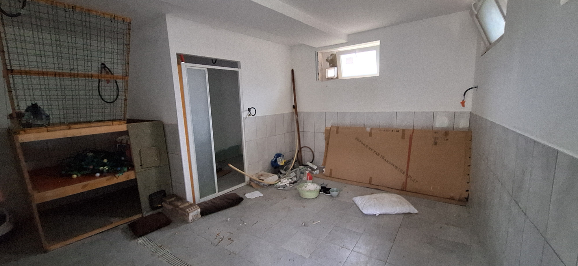 Sur la continuité de la maison , en rdc un studio de 30m2 environ devait etre créer, toutes les evacutaions sont prévus.