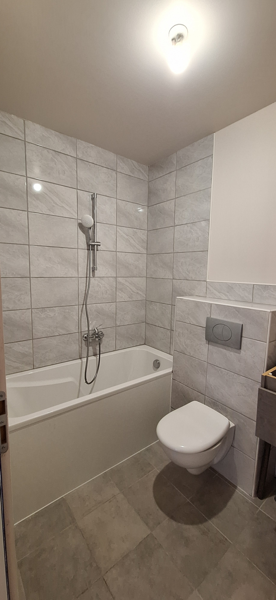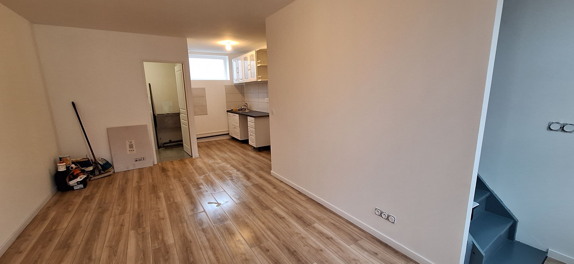 A l'étage un appartement de 45m2 environ complètement refait vous guide vers un espace de vie salon/séjour/cuisine ouverte de 25m2 environ,une salle de bain et son wc,et au deuxième étage deux chambres 9.50 m2 et 11m2 environ.