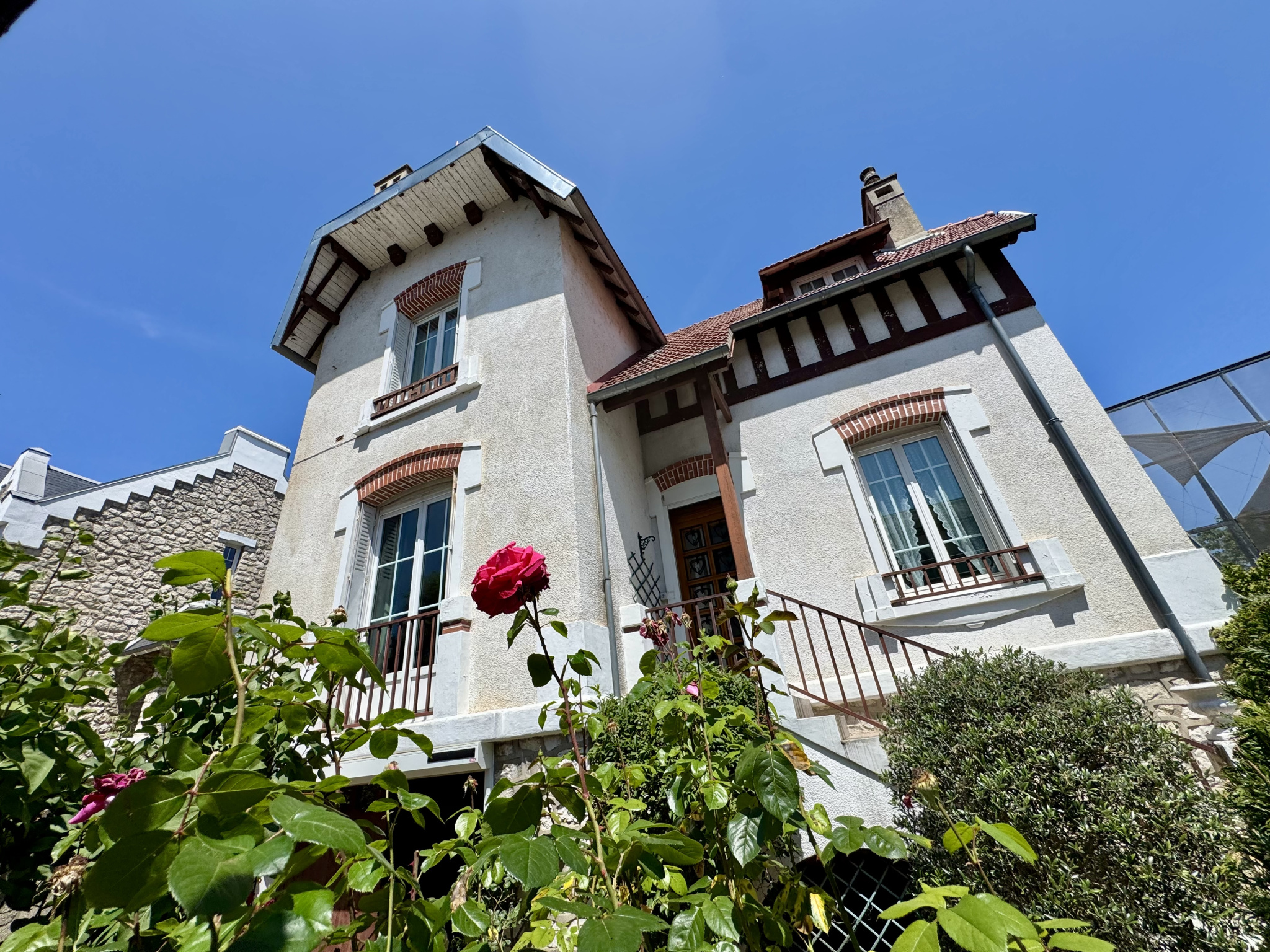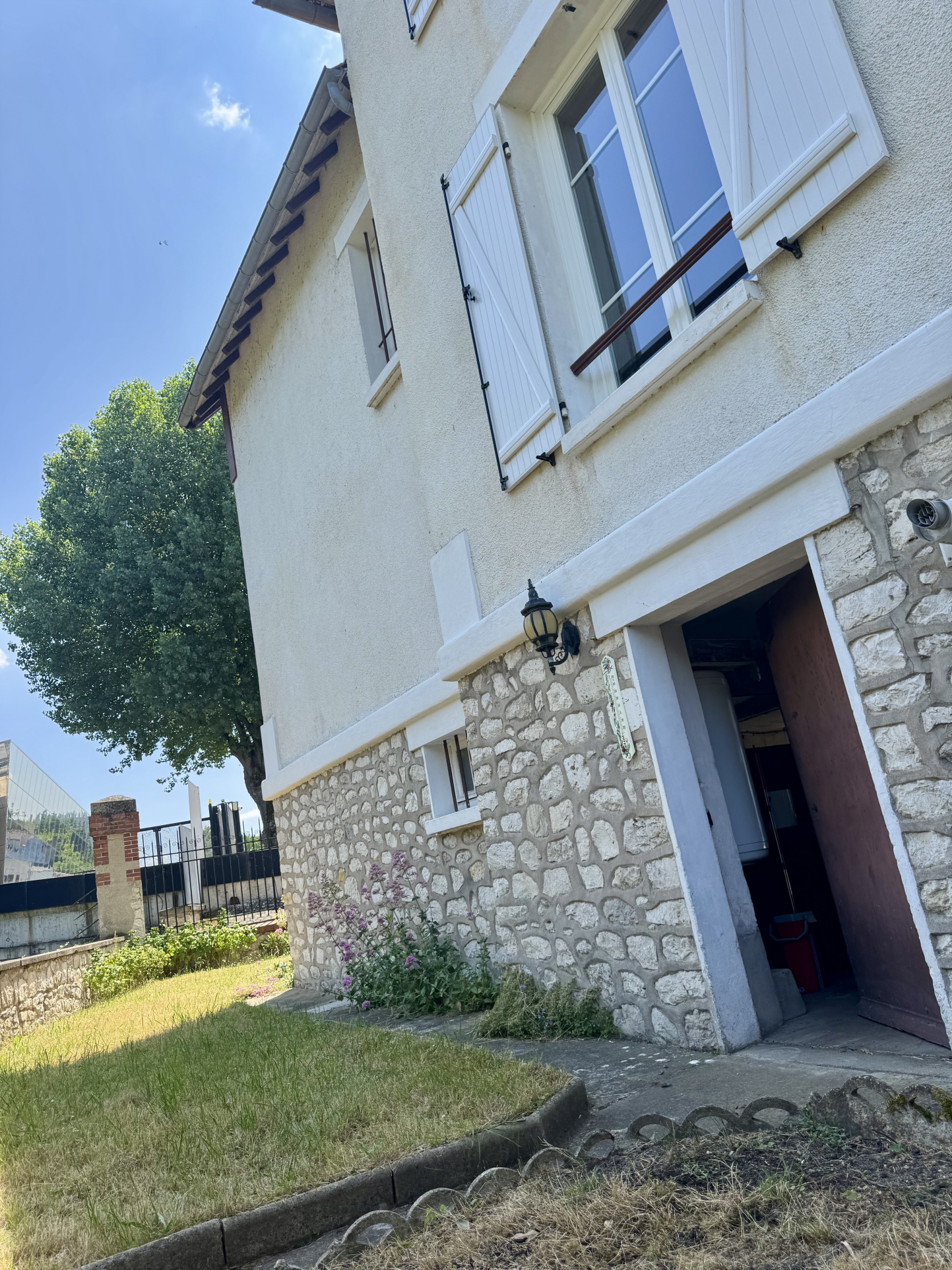 Meulière lumineuse de 88 m2 des années 1928 sur RDC surélevé est composée : d'une entrée spacieuse dessert une cuisine aménagée et équipée, un salon/séjour (25m2) avec cheminée insert, une salle de bain avec WC.