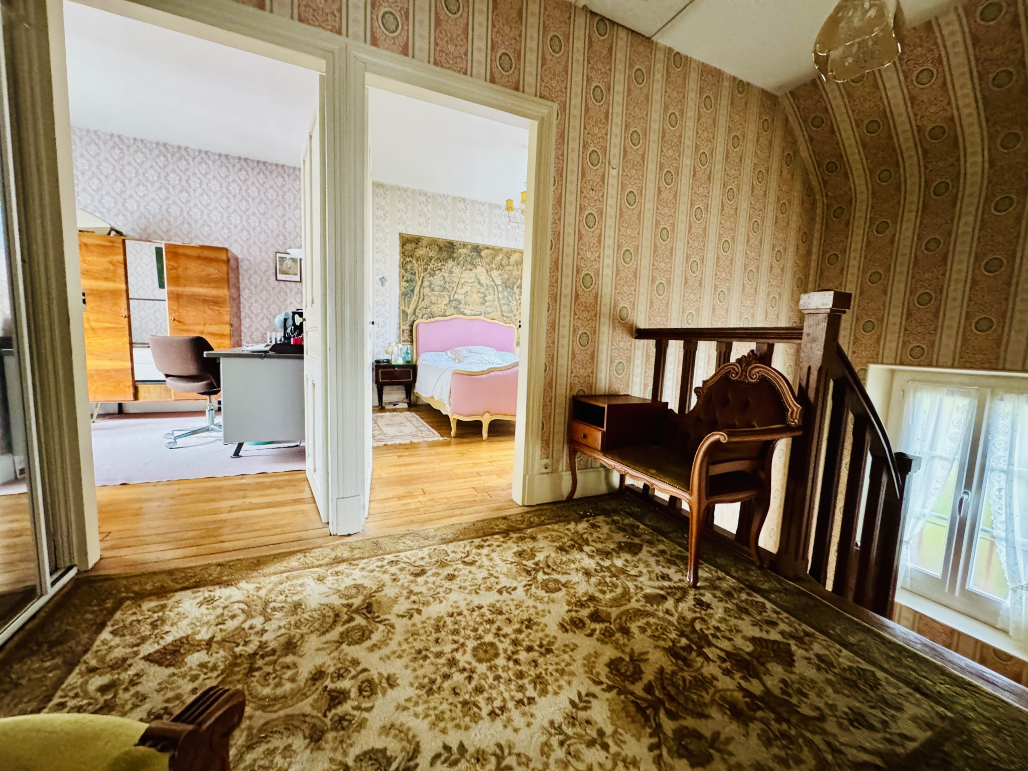 A l'étage : un palier avec penderie, 3 chambres aux beaux volume dont 1 avec point d'eau (12m2, 14m2, 18m2), la possibiliée d'y mettre un WC.
