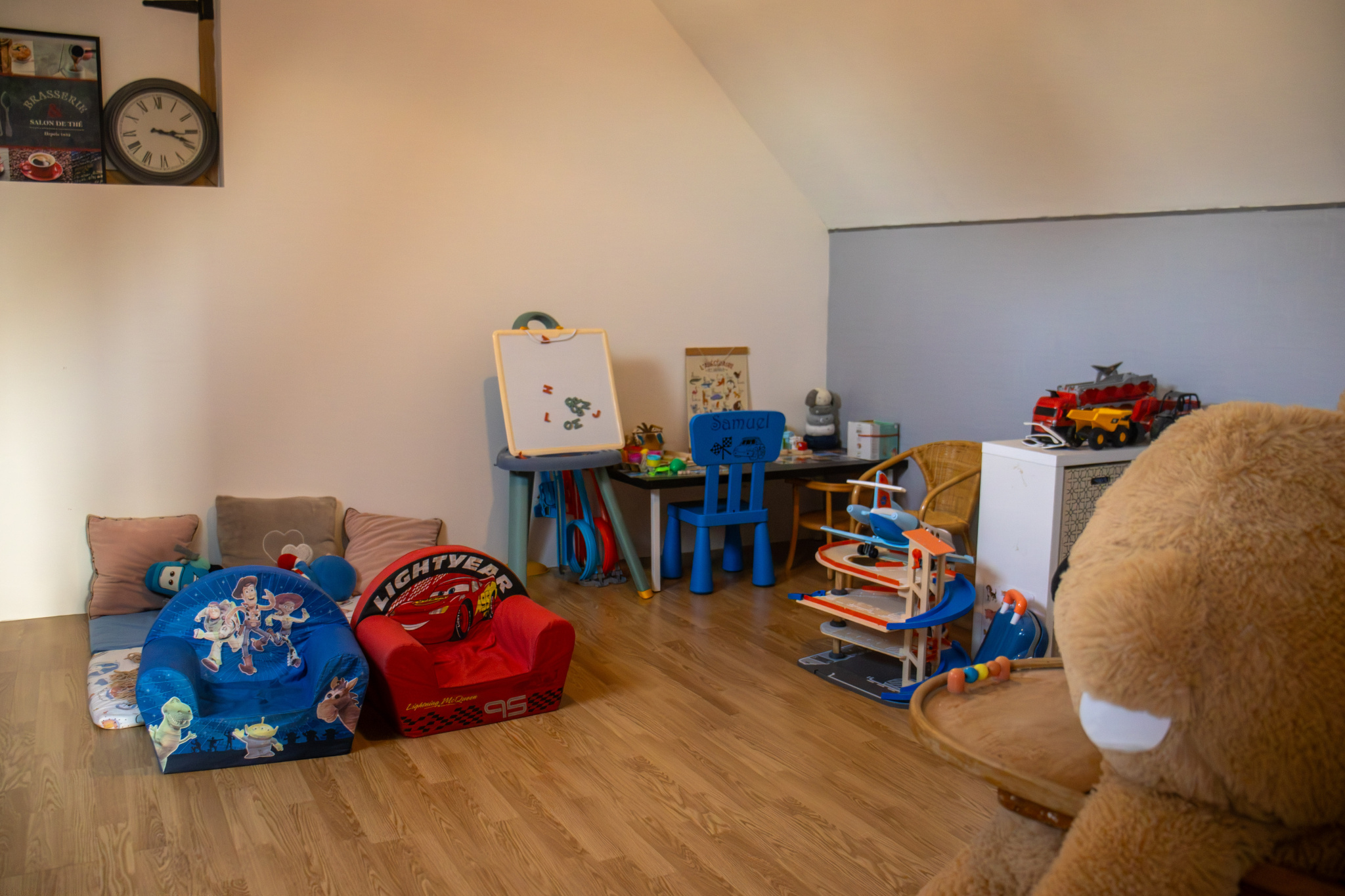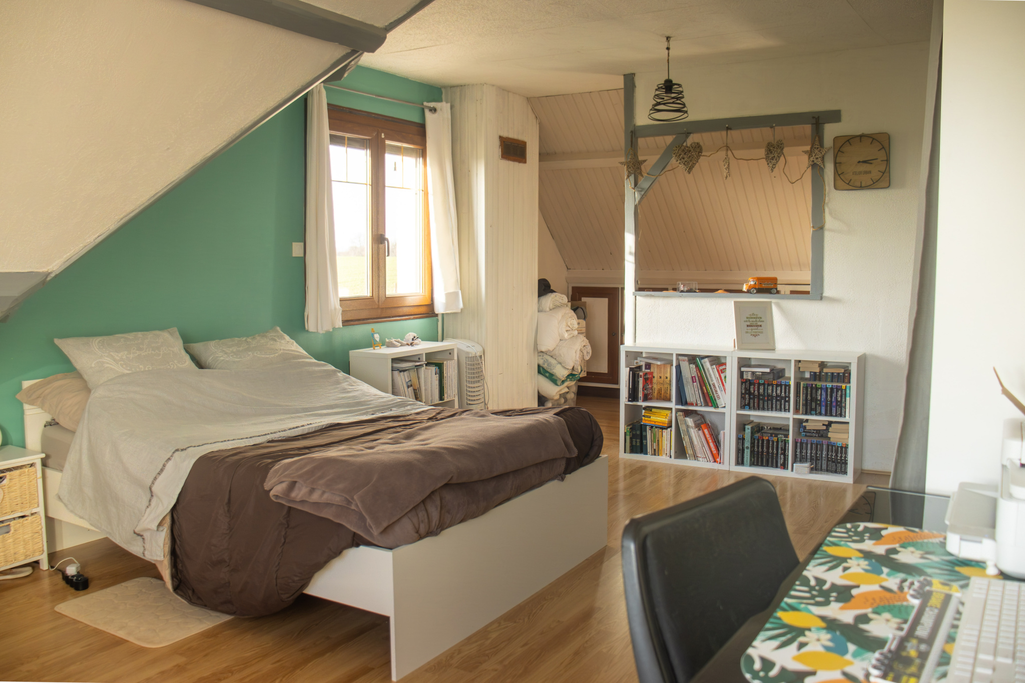 A l'étage, un palier, une chambre et une suite parentale avec douche.