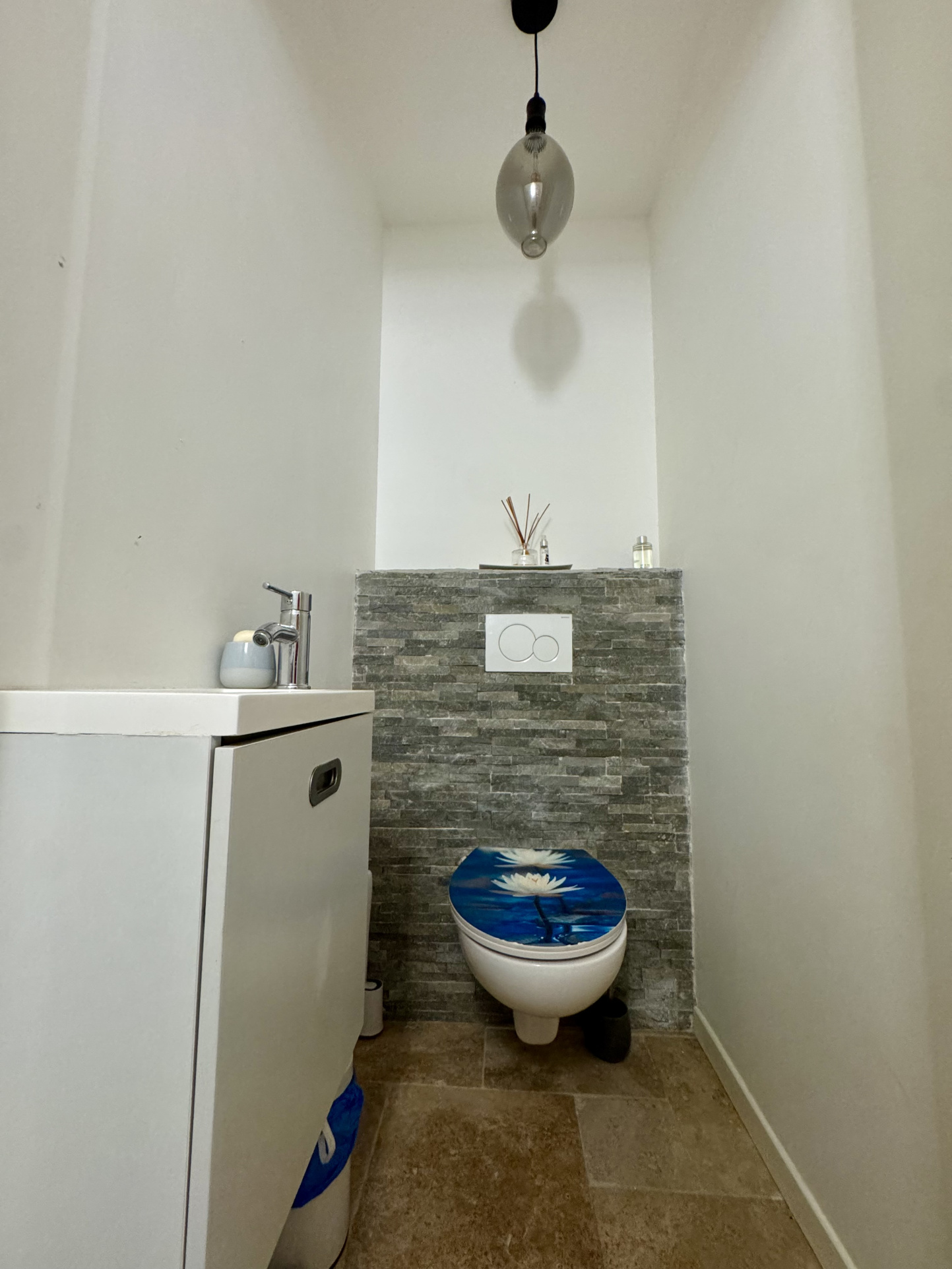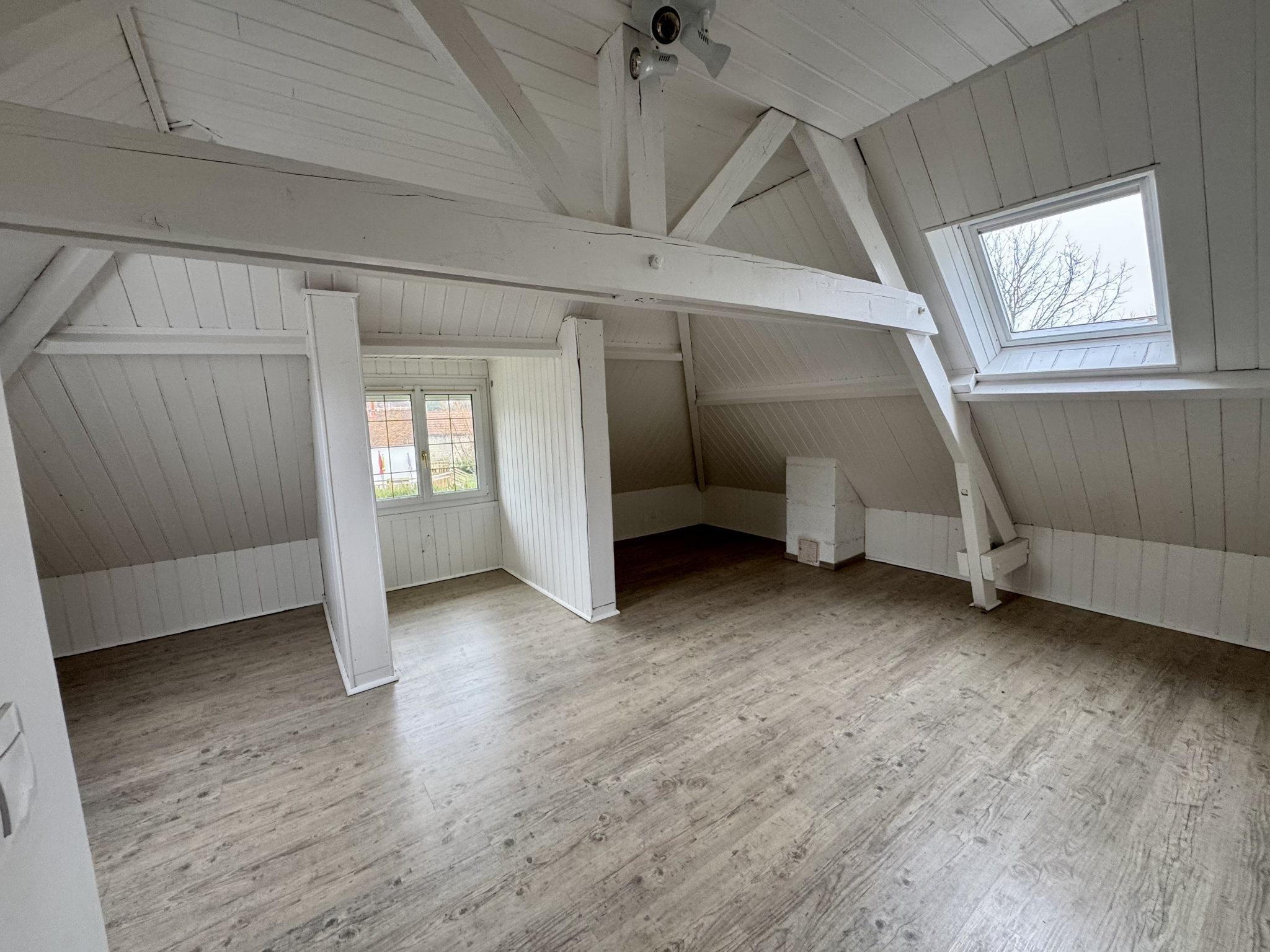 À l’étage, un spacieux palier (30m2) dessert 3 chambres (14m2,19m2) avec la possibilité d’une 4e chambre, ainsi qu’une salle d’eau avec WC.