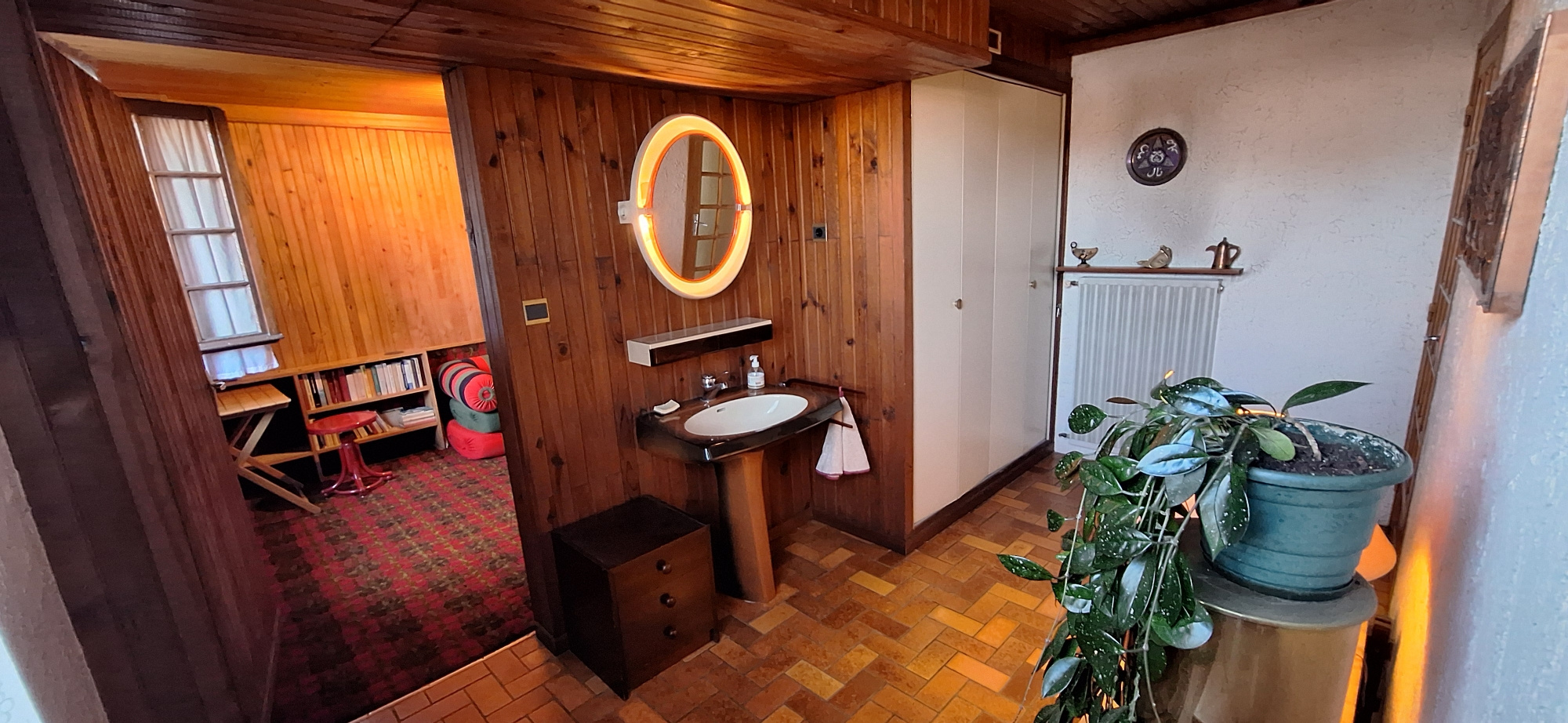Au sous-sol un couloir spacieux avec un point d'eau ,une chambre,et un garage et une pièce atelier/buanderie.