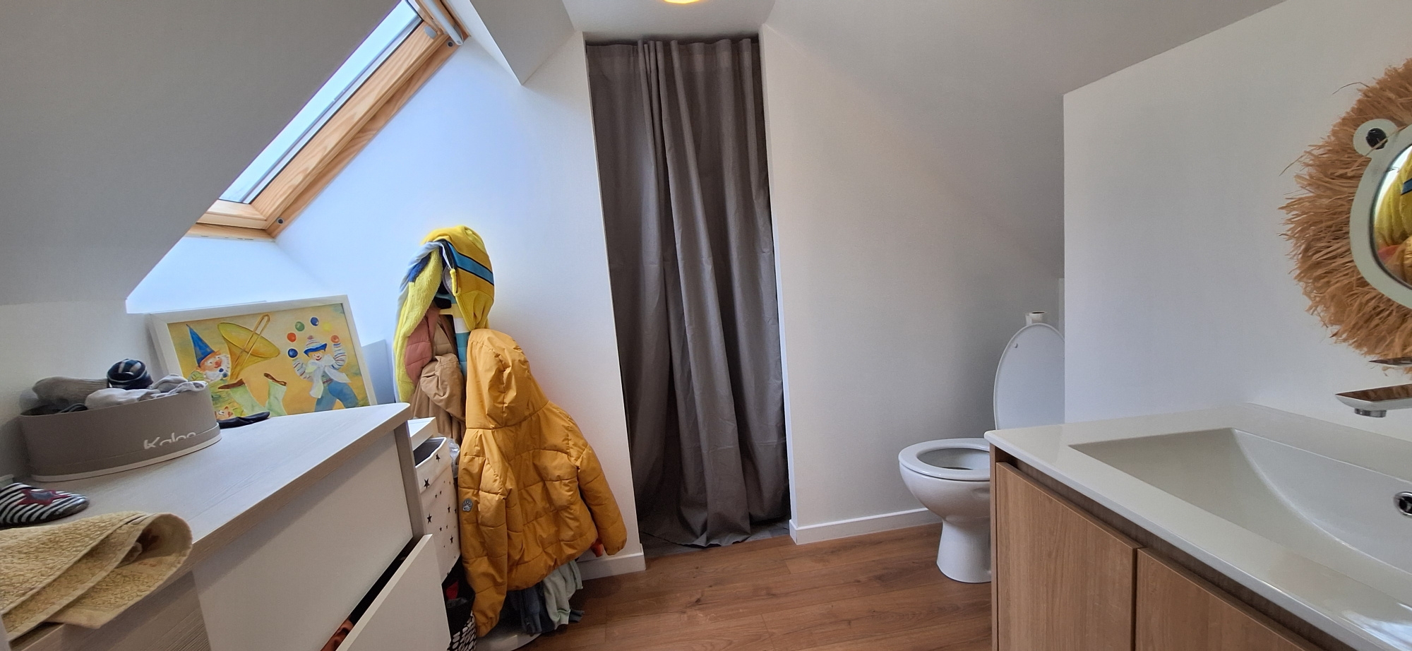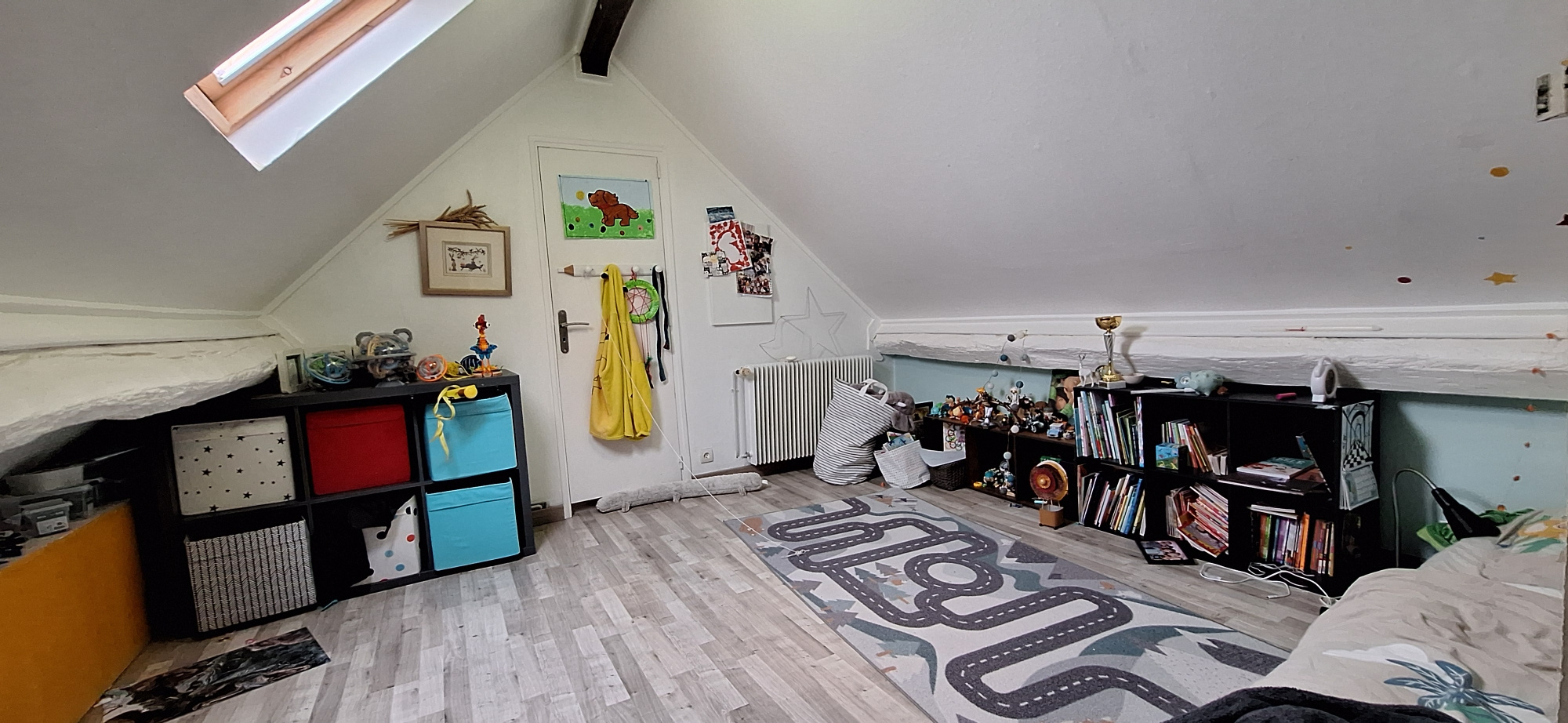 Un escalier du salon,vous amène à un palier, qui dessert un dressing, à deux chambres, et un coin lavabo et wc.