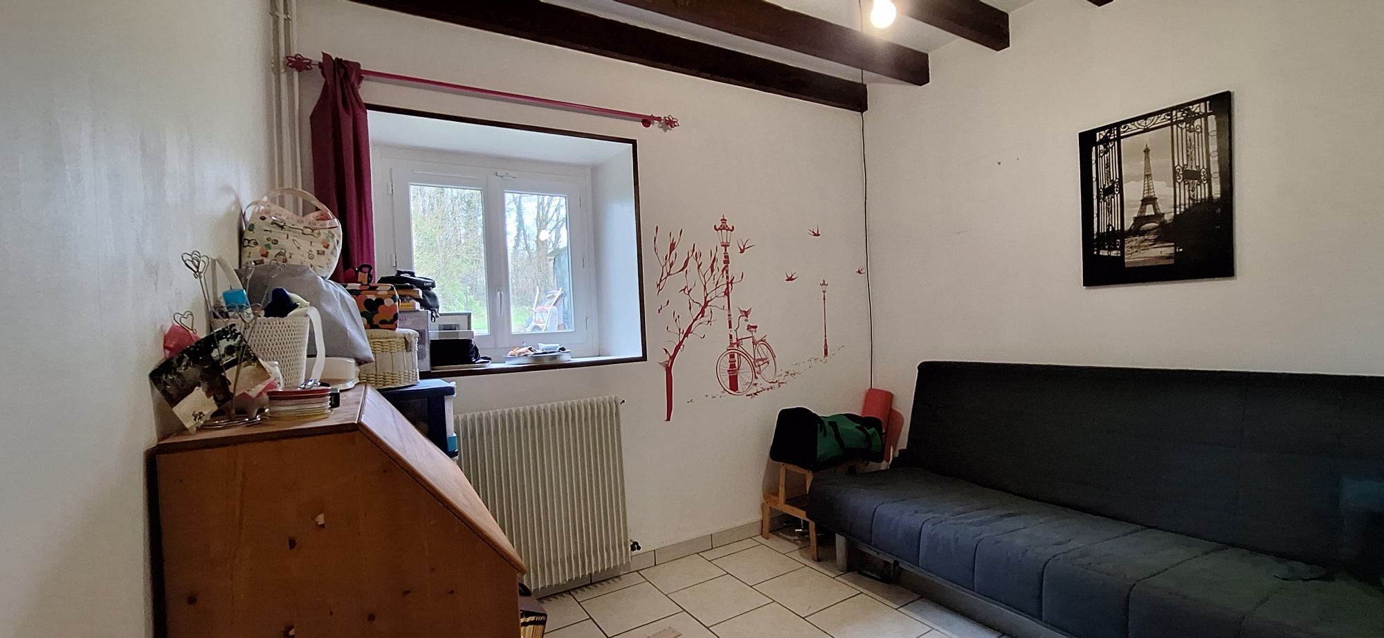 Aux Vallées de la Vanne 15km de Sens, maison située au calme elle vous accueille par une entrée sur un couloir qui dessert un placard de rangement, un wc séparé, une salle d'eau et une chambre ou un bureau de plain pied.