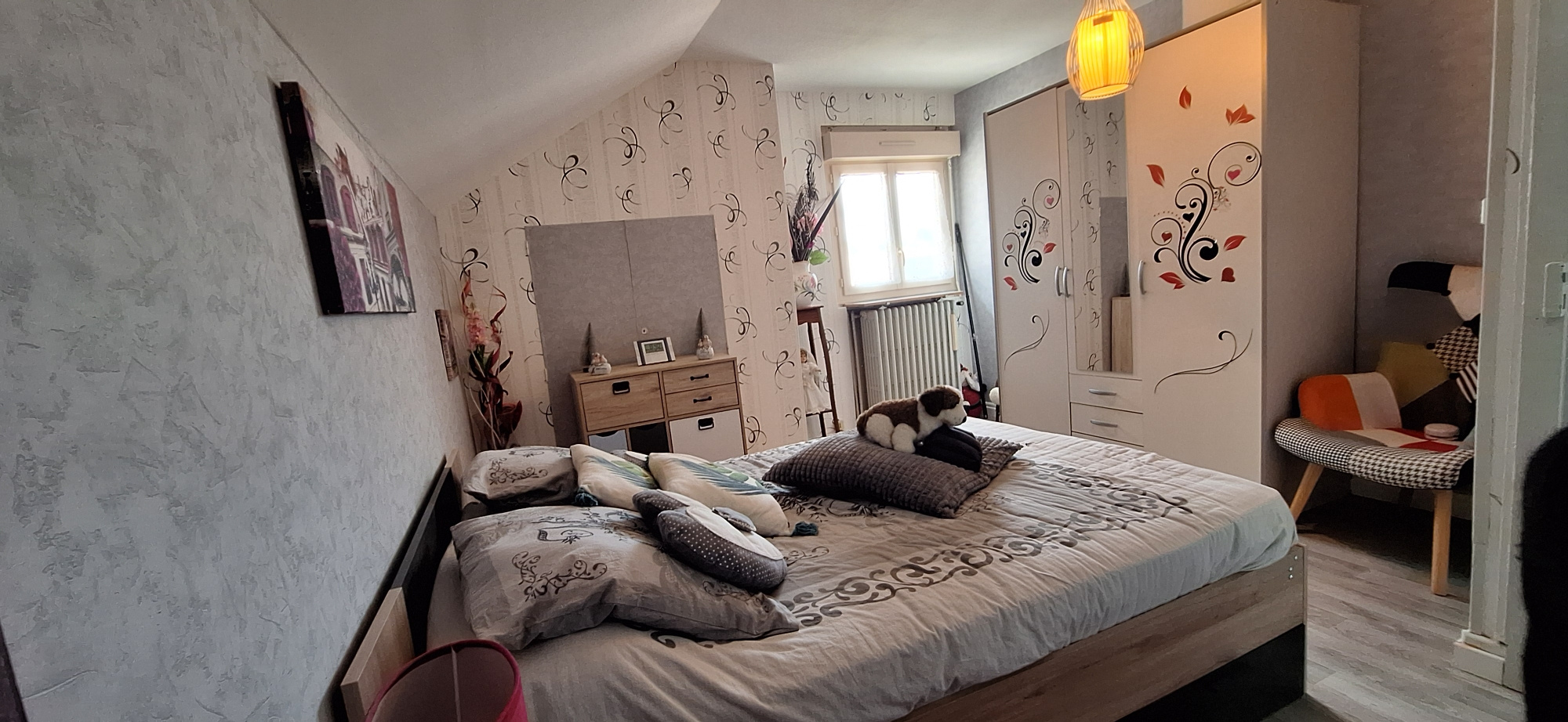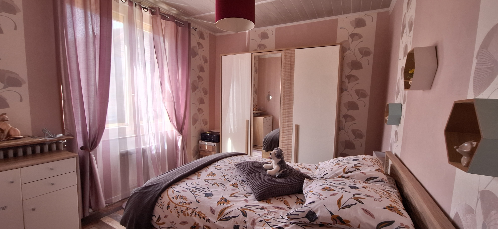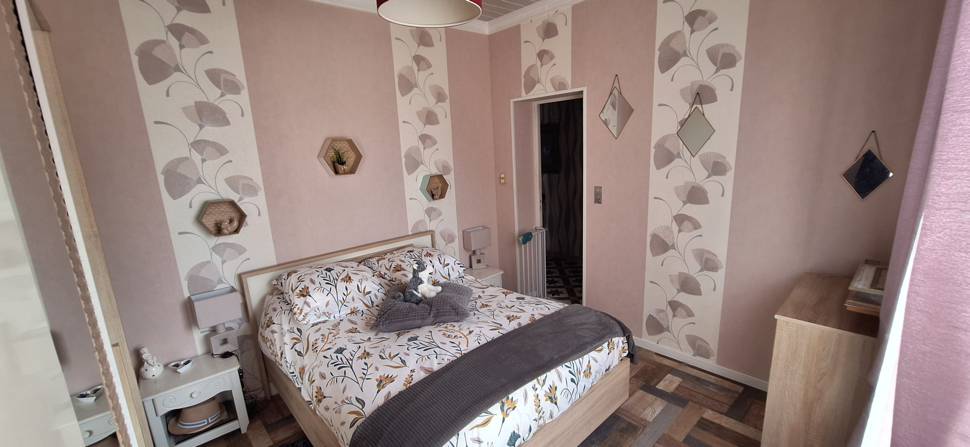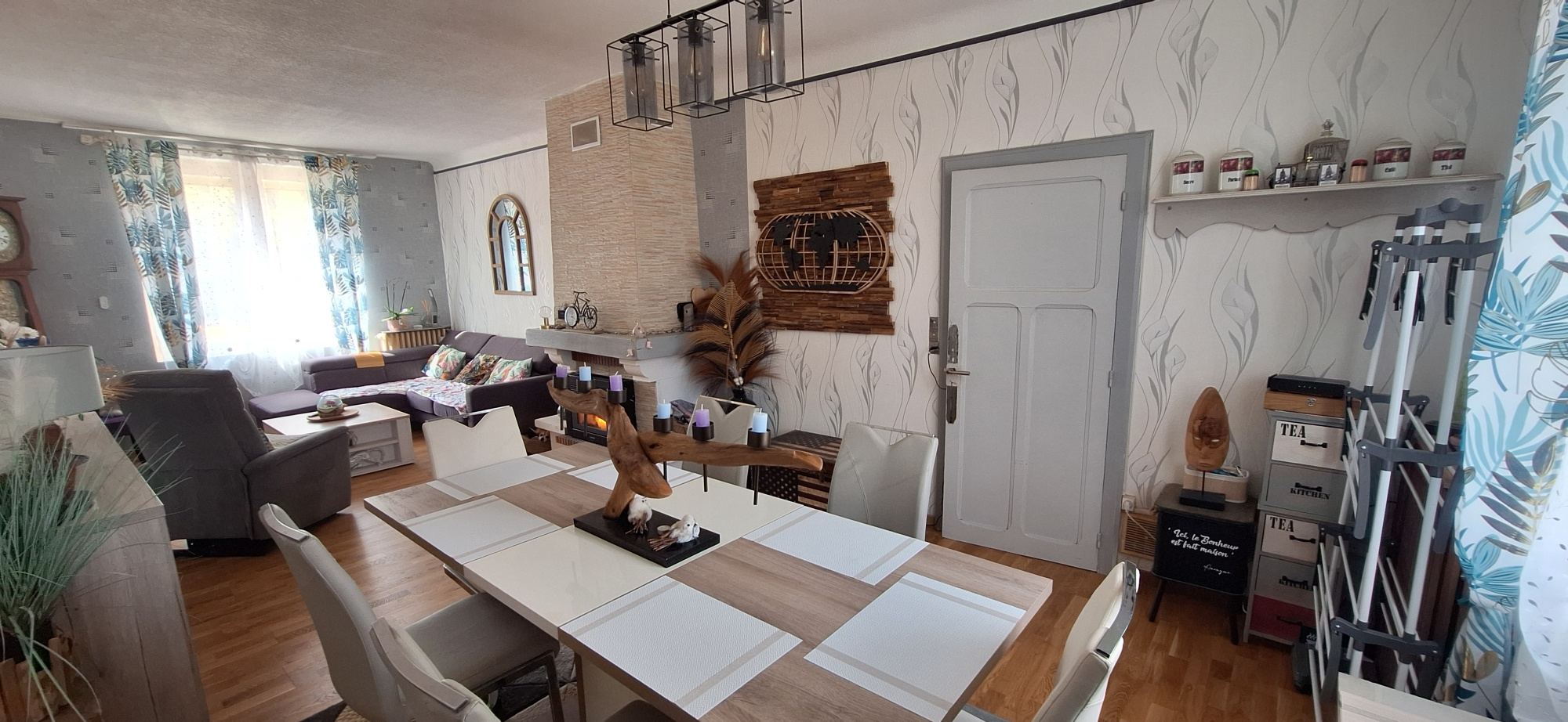 Cette maison vous acceuille par une entrée sur un couloir qui vous invite sur un salon/séjour spacieux et lumineux avec une cheminée/insert.