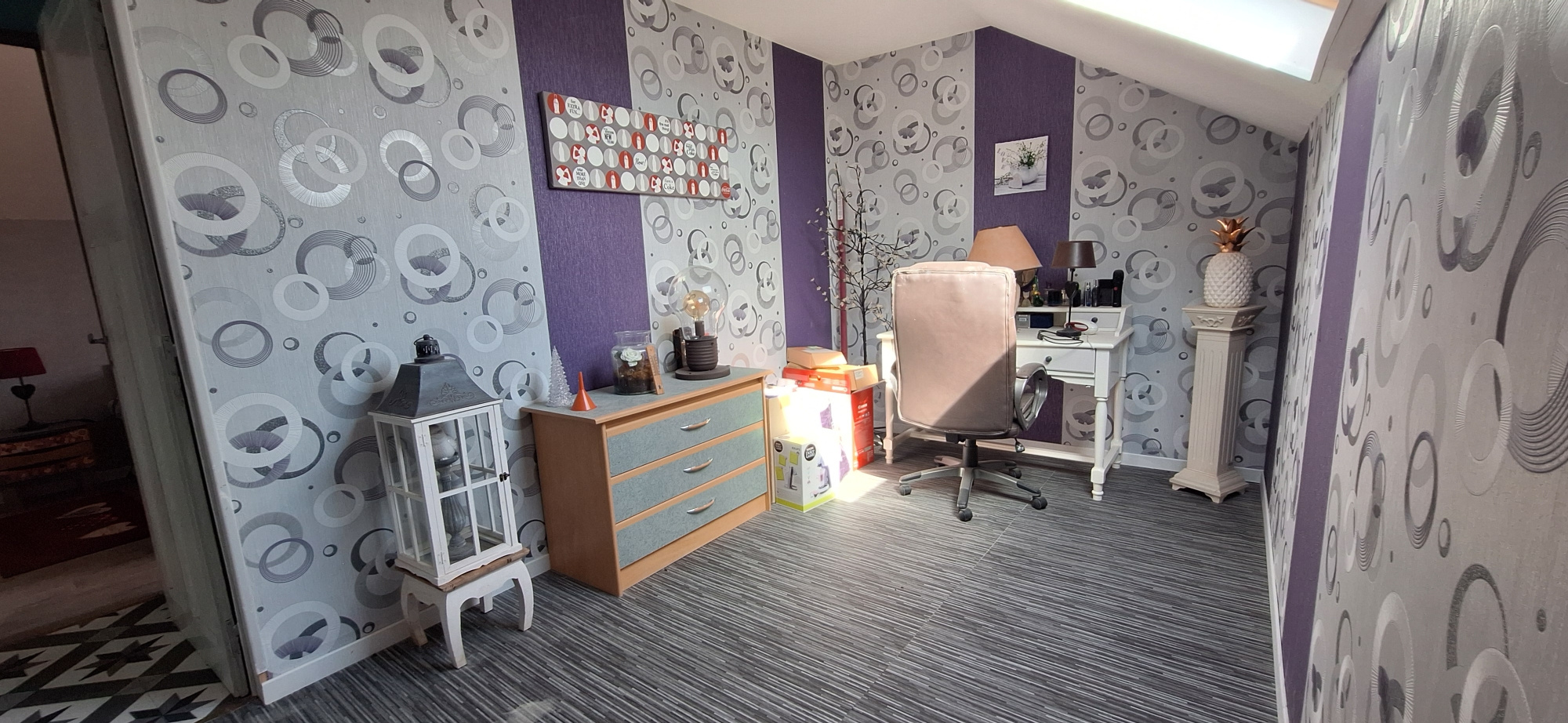 A l'étage un palier,qui vous invite sur un bureau ou petite chambre et trois chambres de 9, 10, et 12m2
