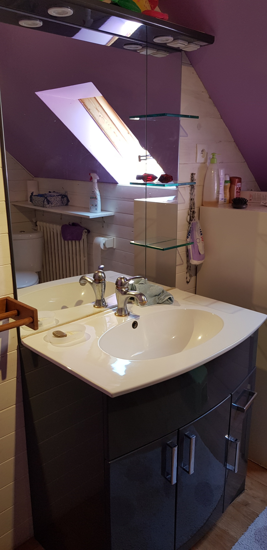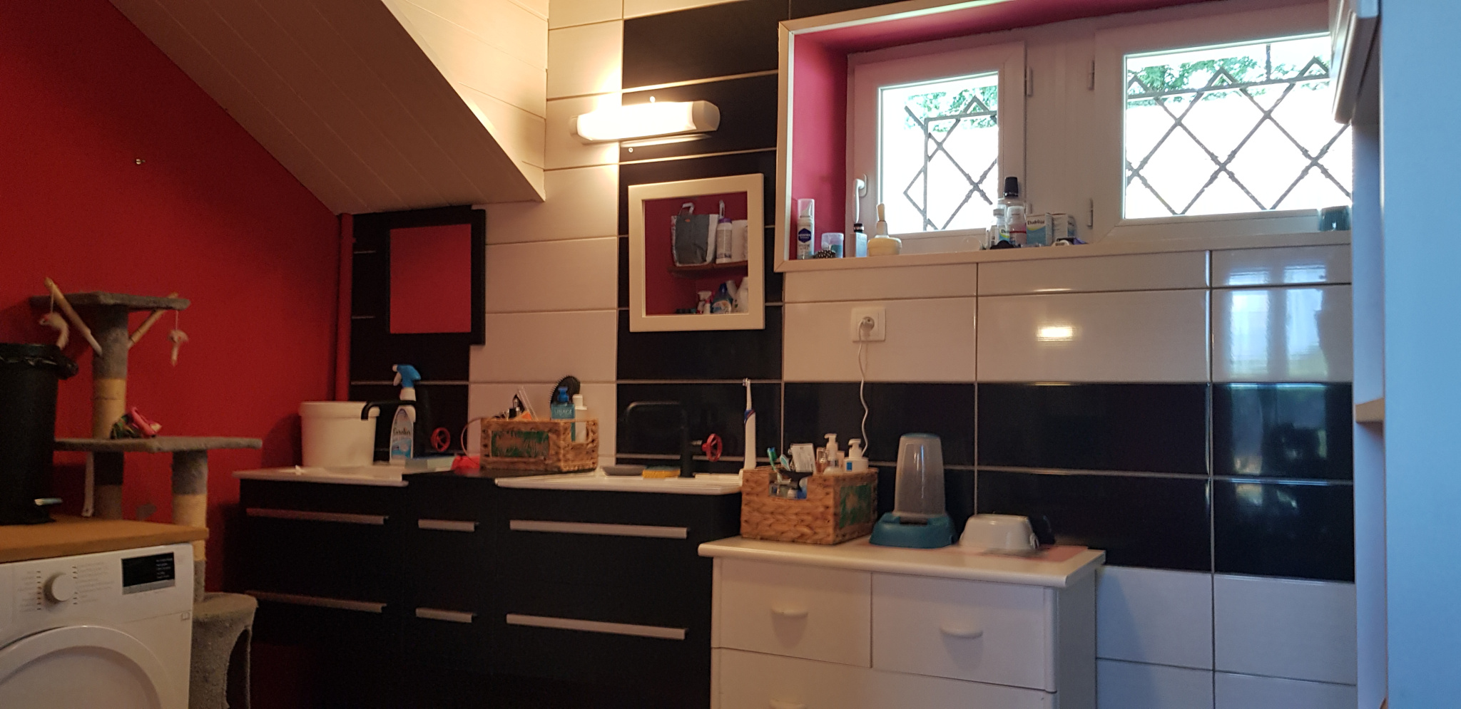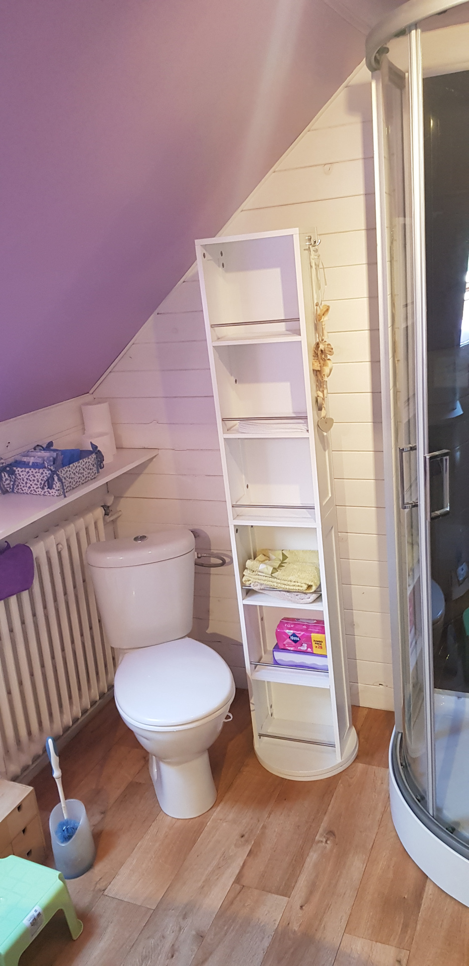 Depuis l’entrée, un second escalier conduit : un espace nuit composé de deux chambres supplémentaires ainsi qu’une salle de bain et son wc, idéal pour accueillir famille et amis.