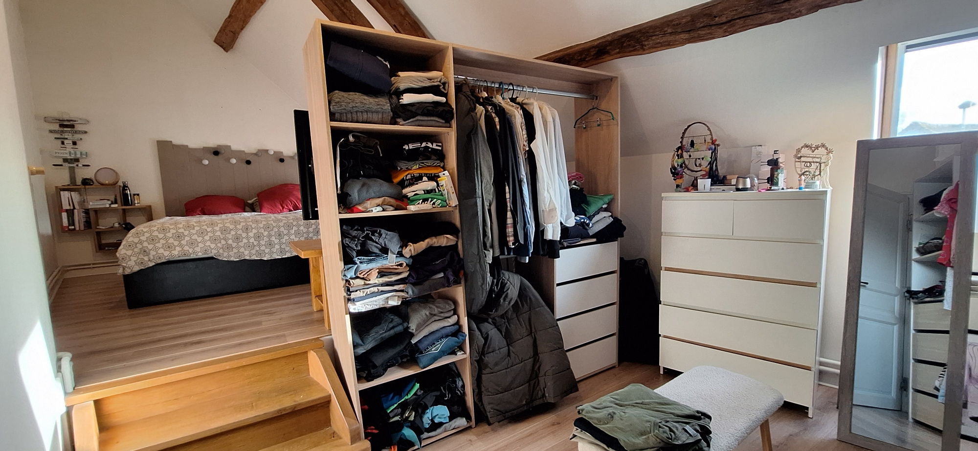A l'étage un palier/couloir vous guide vers trois chambres avec de beaux volumes 12,90m2, 12,70 m2 dont une chambre parentale de 25m2 environ avec son coin dressing. Une salle d'eau et des wc sont présents.