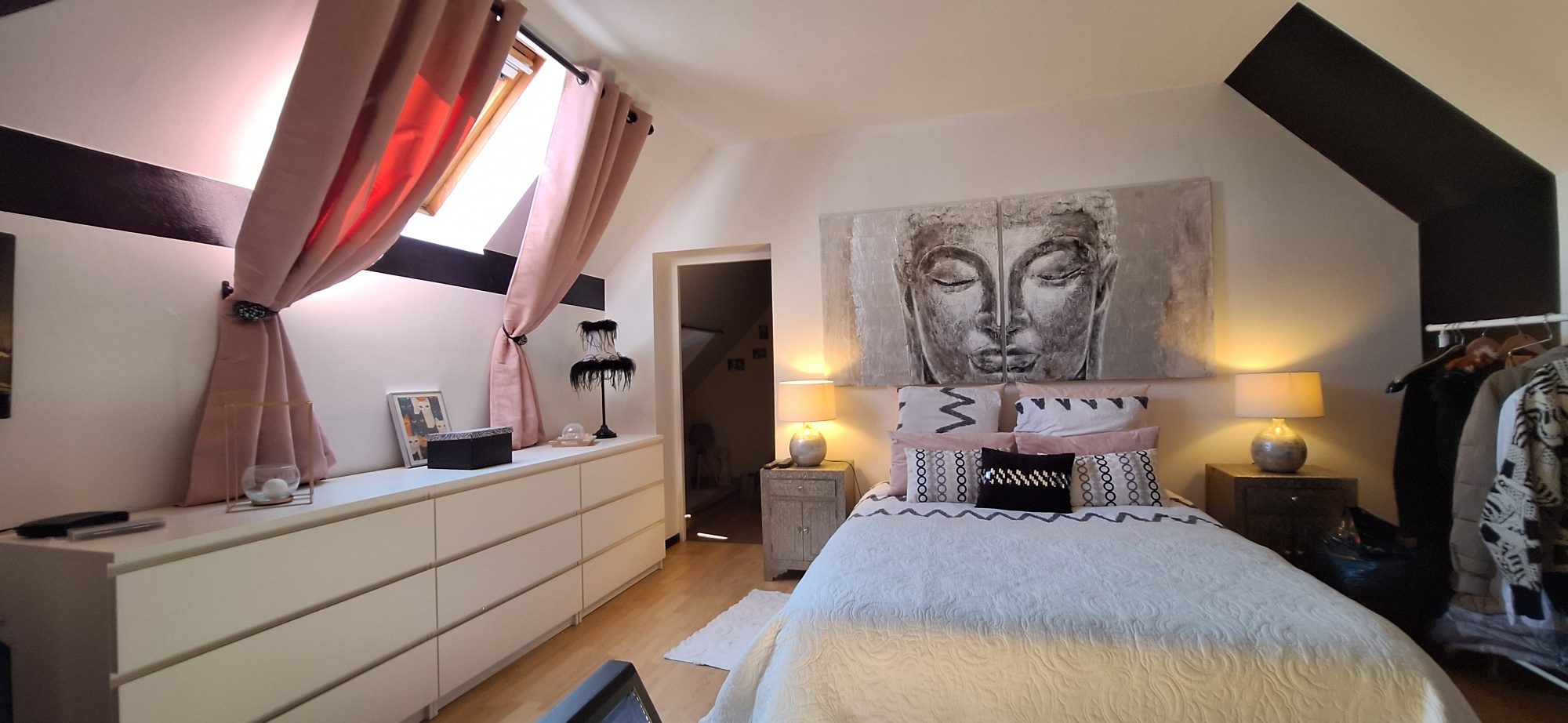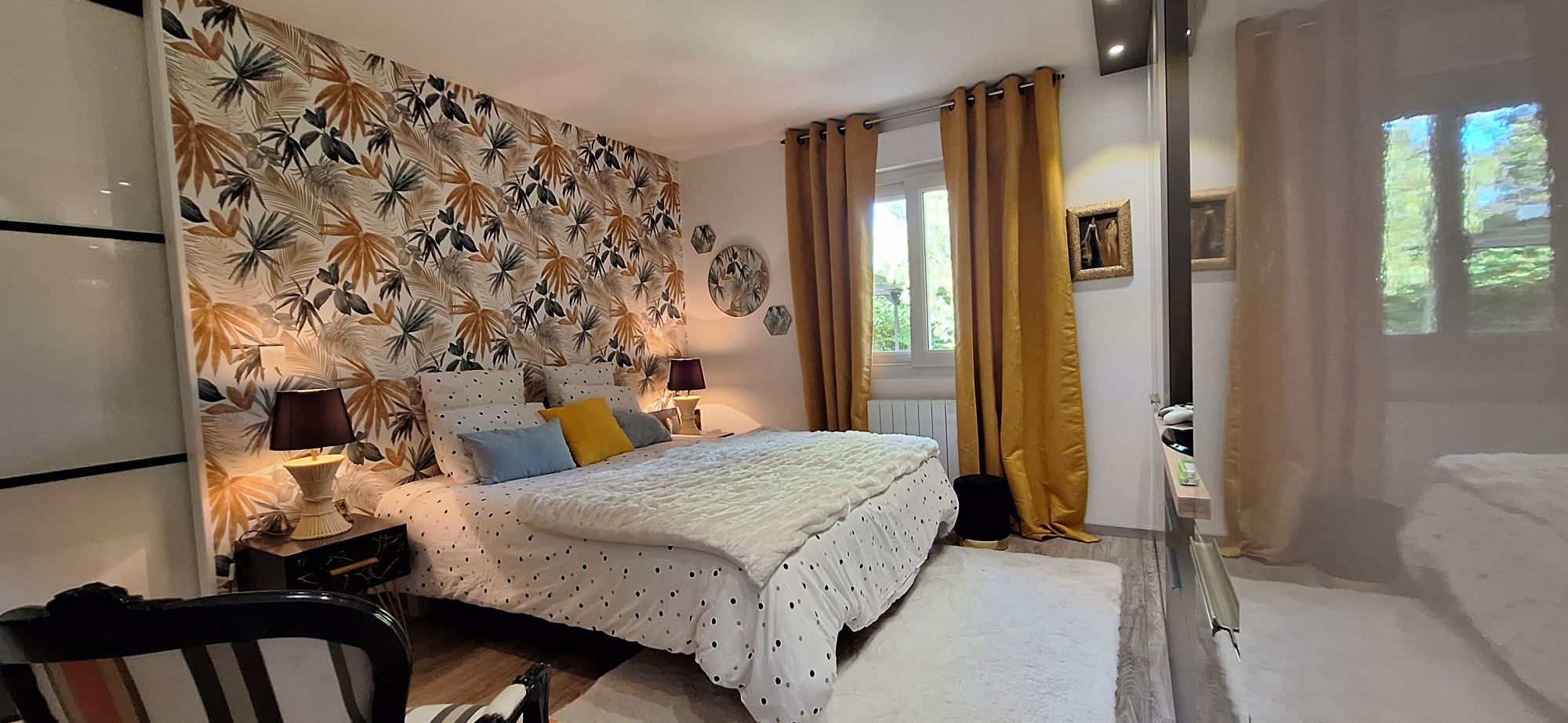 Trois chambres de plain pied, dont une suite parentale avec un dressing sur mesure avec un accés privatif à l'espace salle de bain, une deuxième chambre avec son dressing intégré, ainsi qu'une troisième chambre ou bureau, en fonction des besoins, une buanderie,et un wc est présent à l entrée.