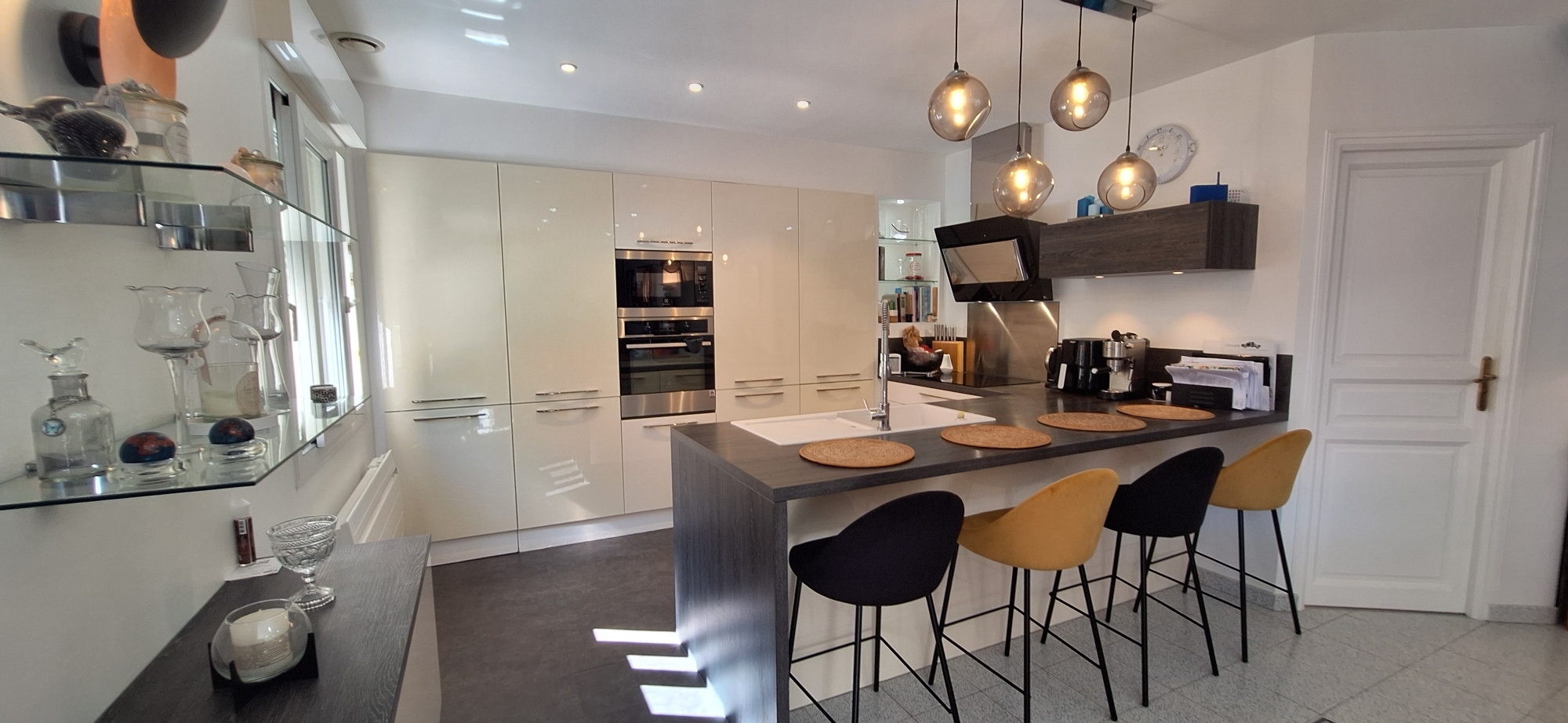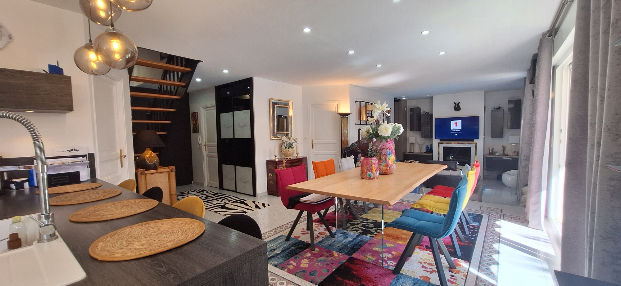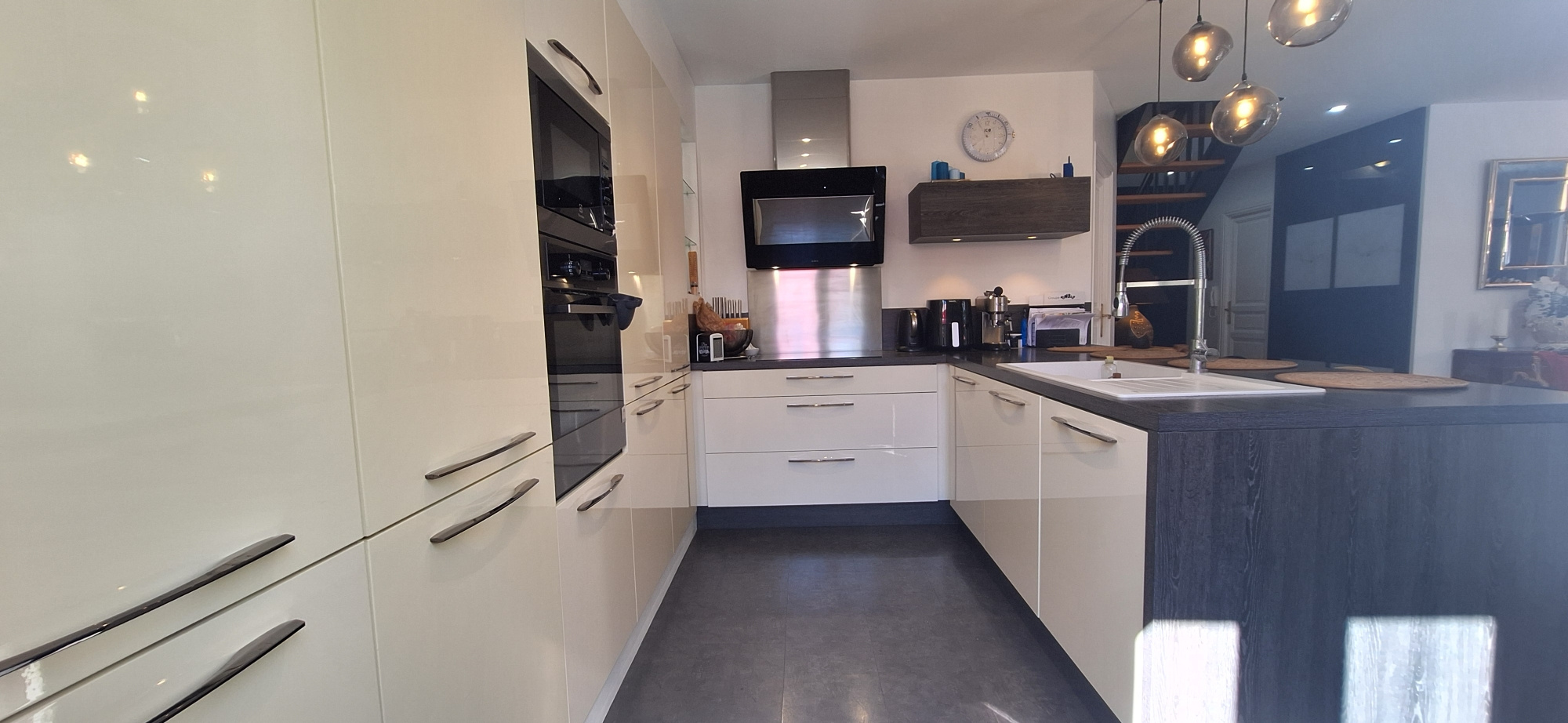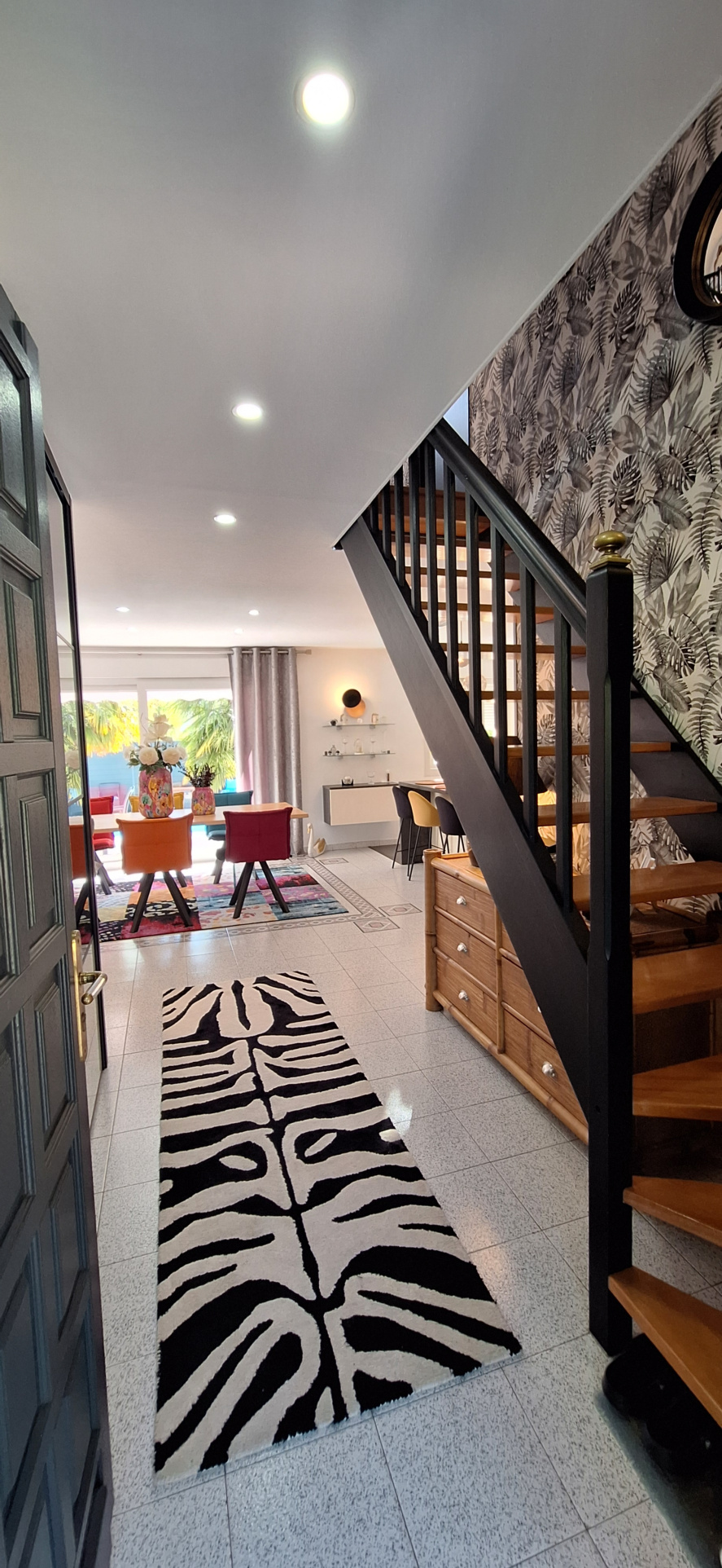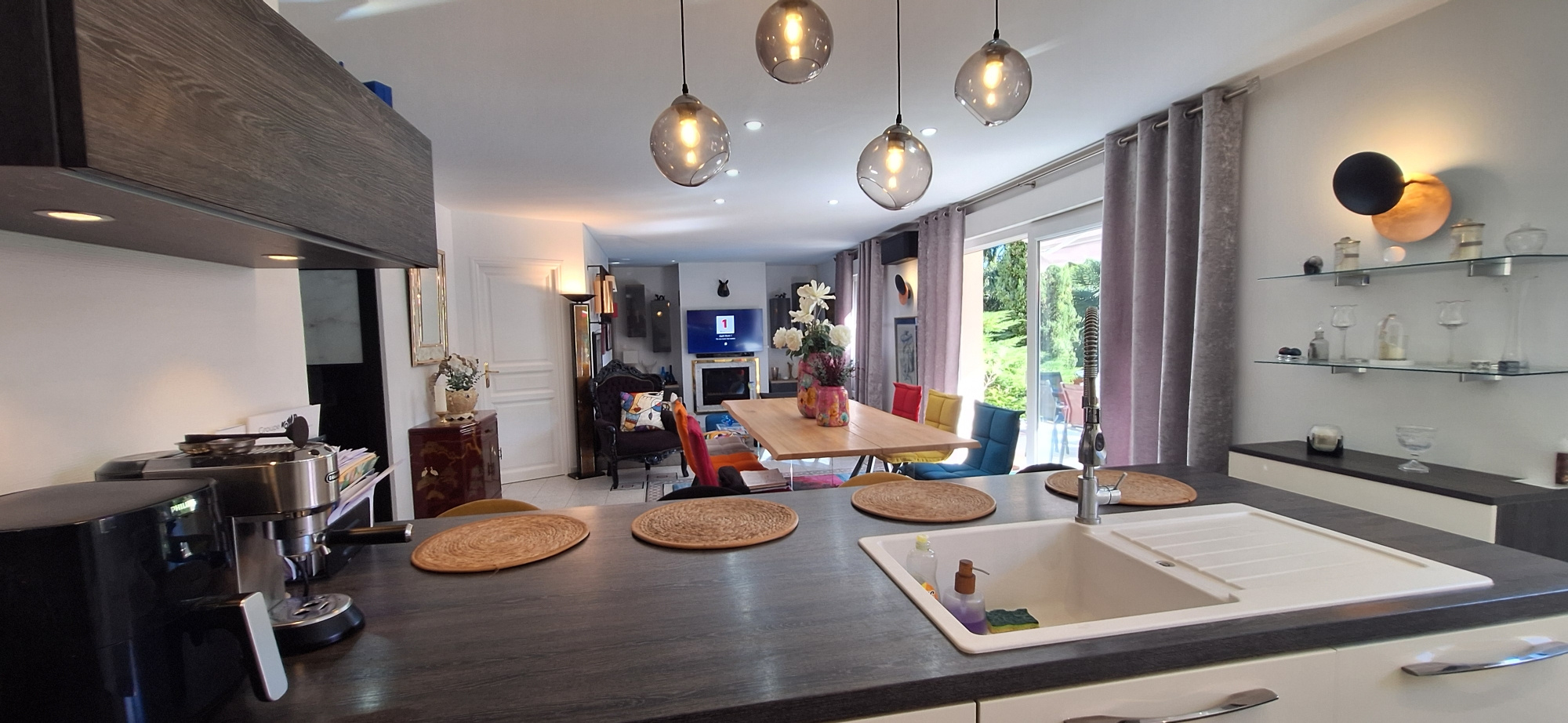Le spacieux couloir d'entrée vous invite avec son armoire de rangement sur mesure, il vous amène sur un espace pièce à vivre d'environ 45m2, cuisine équipée ouverte sur votre salon, et suivi d'un séjour accompagné de grand baies vitrées qui vous ouvre le regard sur l espace piscine et détente.