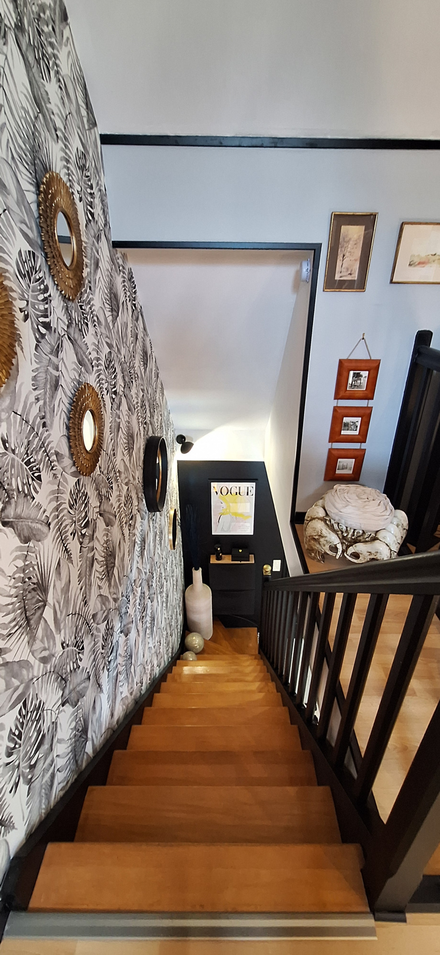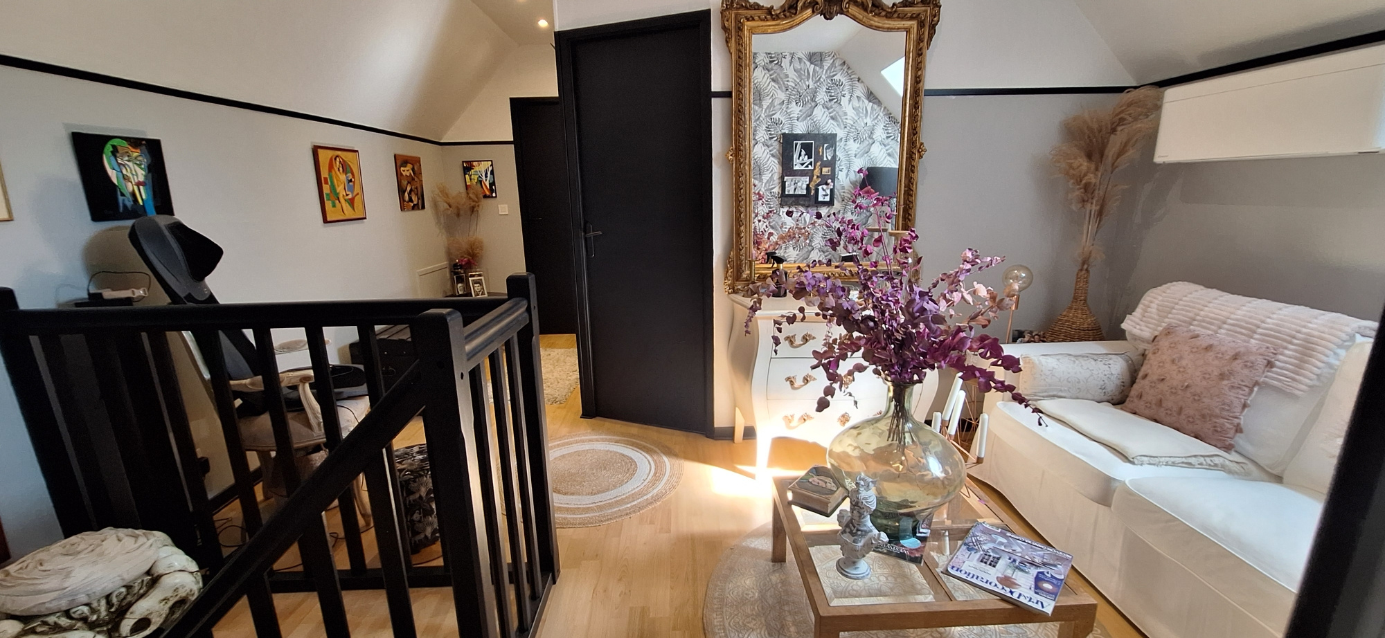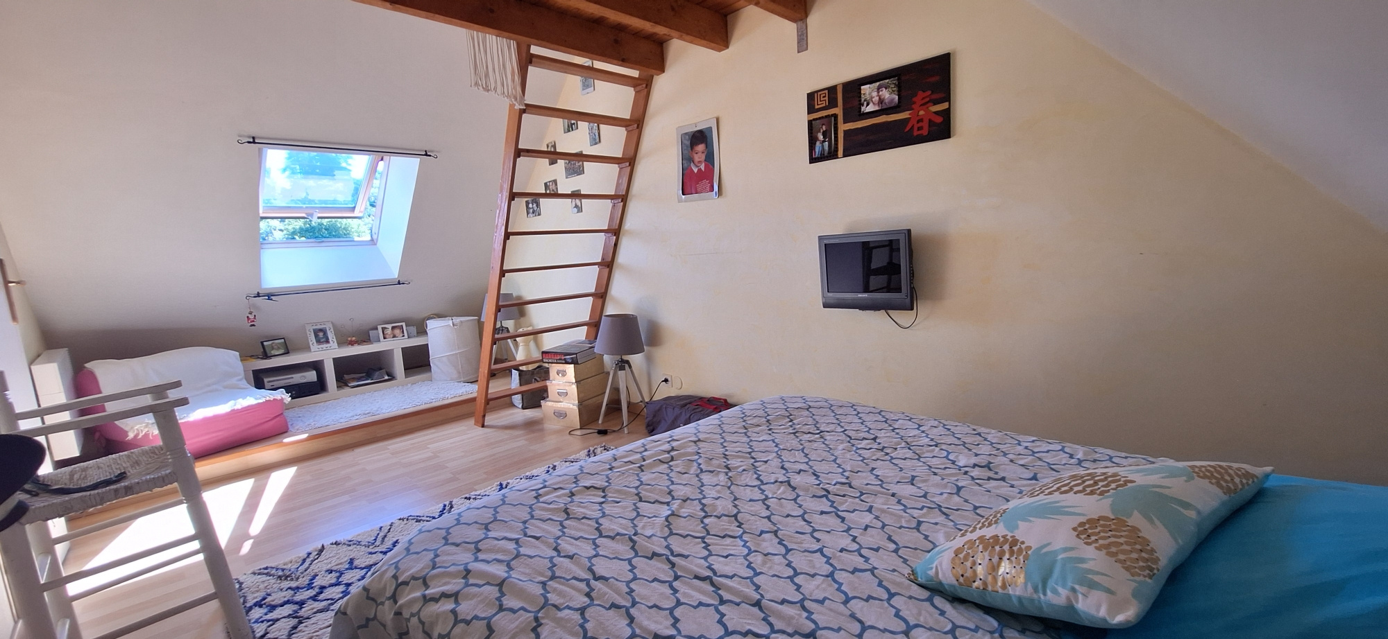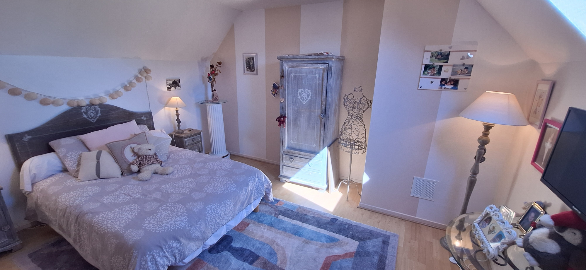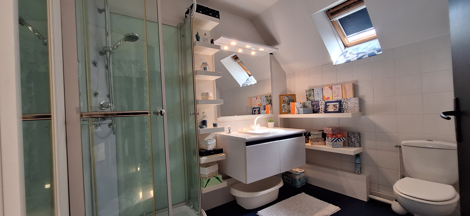 A l'étage un palier, vous invite d'un côté sur une chambre et une salle d'eau et son wc, et de l'autre deux chambres traversantes.