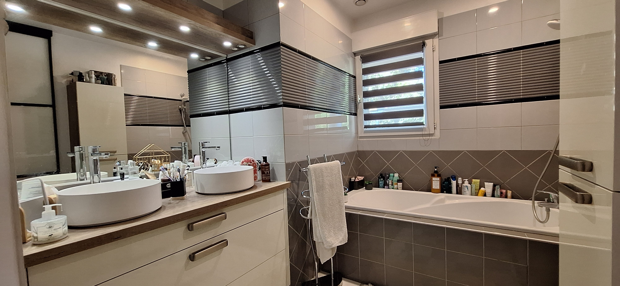 Toutes les huisseries sont en double vitrage accompagnés de volets roulants automatiques pour conserver le calme et le confort du lieux. Le chauffage en pompe à chaleur air/air et des compléments de chauffage électrique de bonne facture.