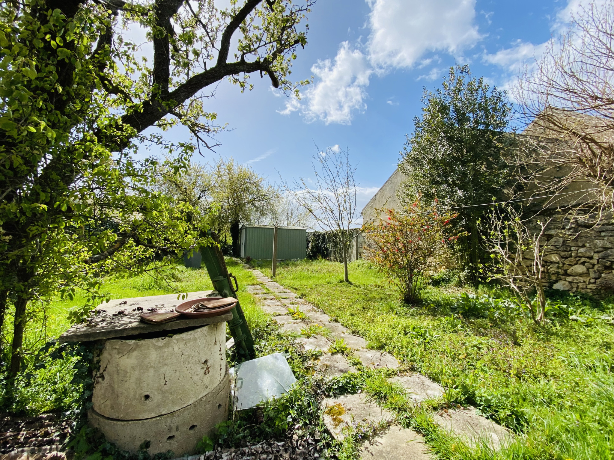 Côté extérieur, les atouts ne manquent pas : une superbe cave voûtée avec accès indépendant, deux dépendances laissant place à tous vos projets (atelier, stockage, espace de loisirs…), une cour permettant de stationner jusqu’à deux véhicules, ainsi qu’un jardin agréable avec abri et puits.