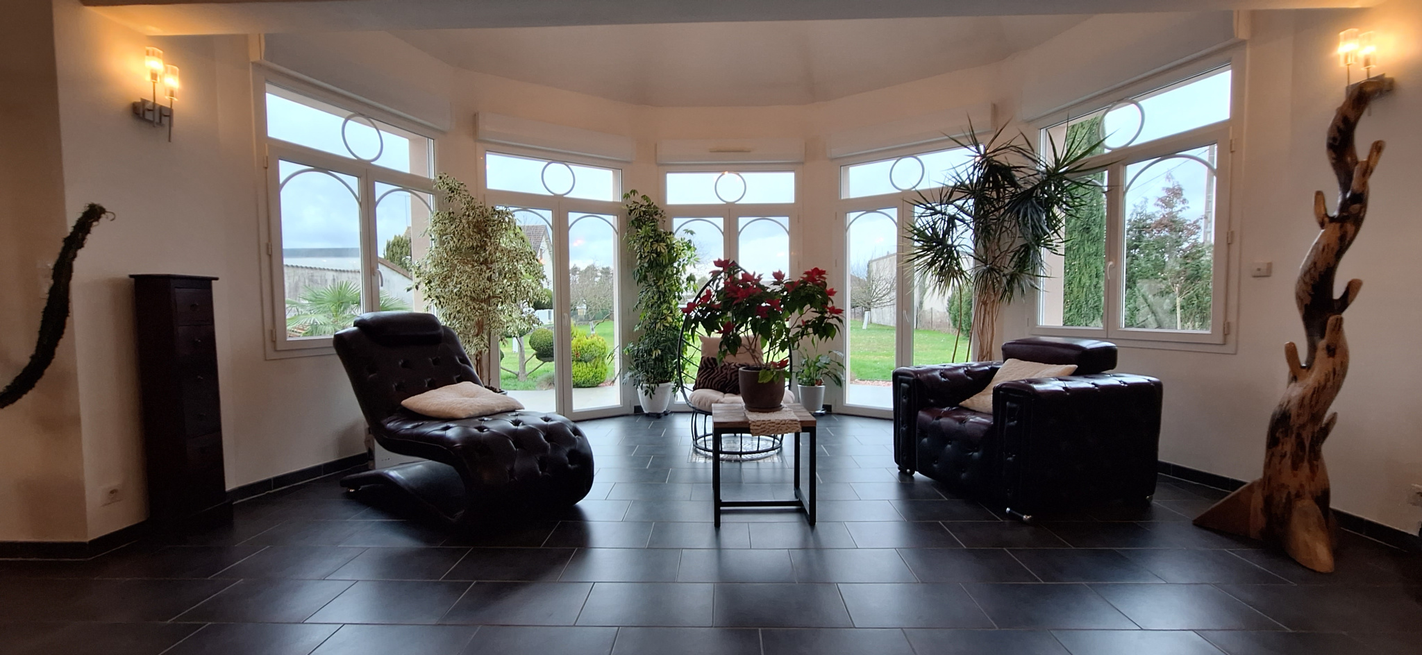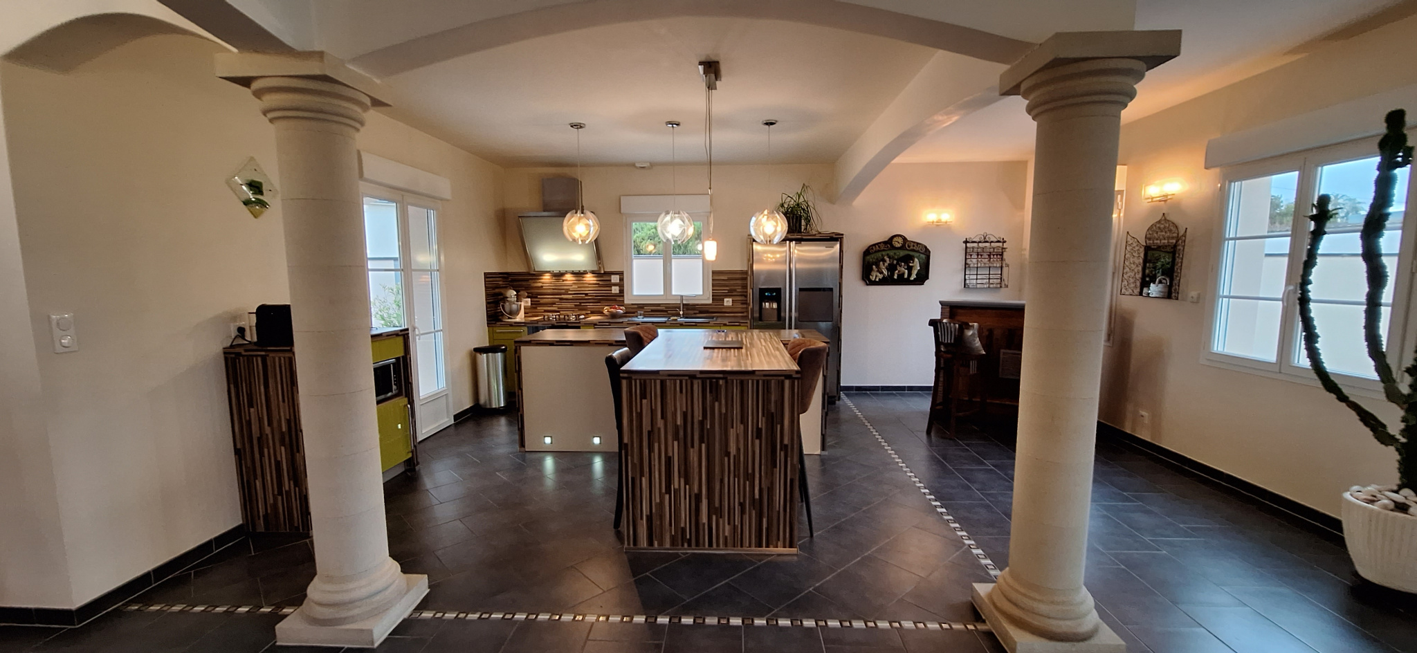 Des volets roulants automatisés. Accompagné au rez-de-chaussée par un wc, un cellier, une buanderie, et une chambre ou un bureau actuellement. Un garage avec porte automatique attenant avec un accés par la maison d'environ 30m2.