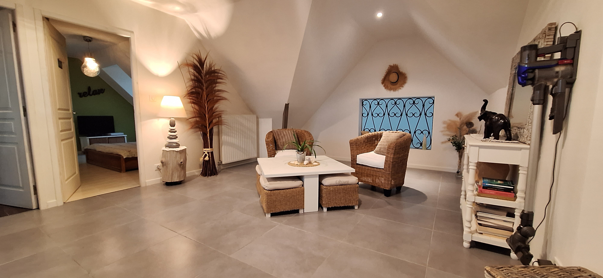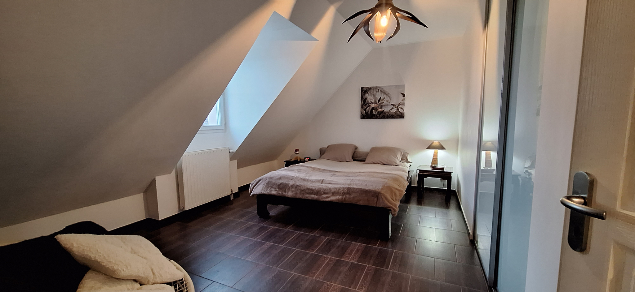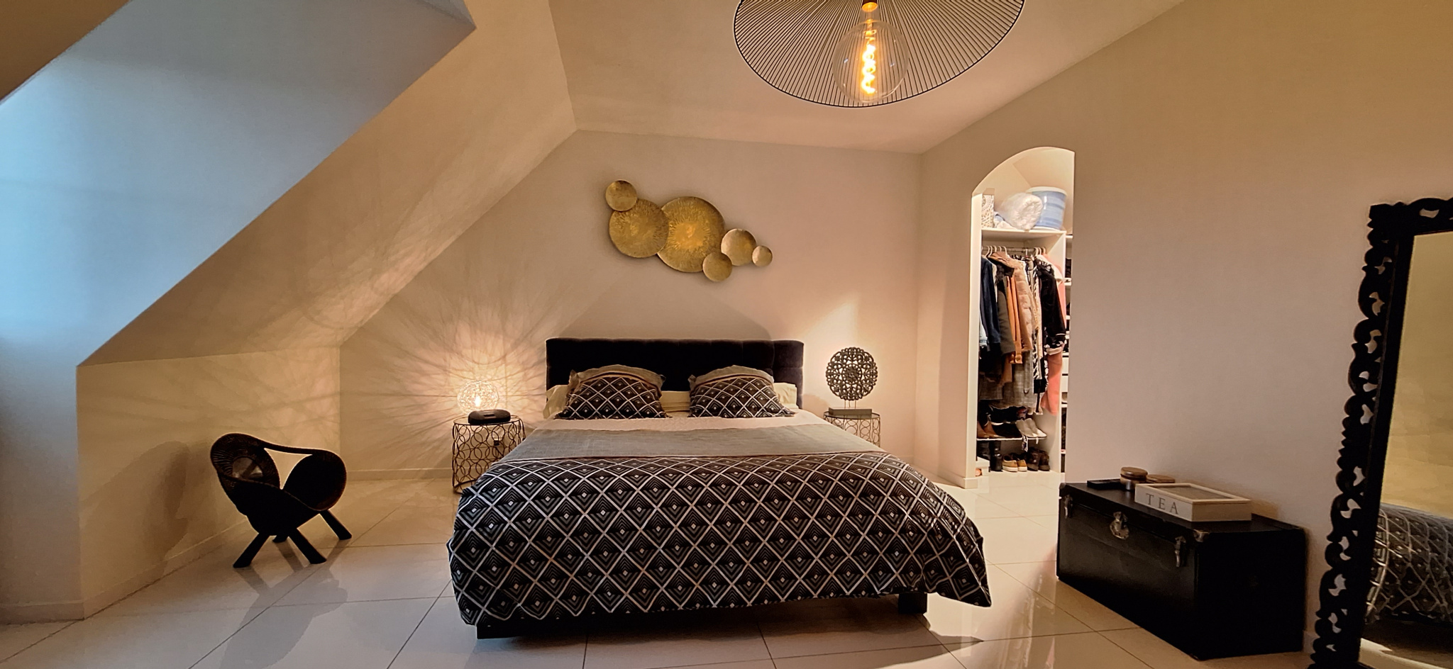 Pour accéder à l'étage un magnifique escalier, vous guide vers un coin détente qui vous invite d'un coté à deux chambres, avec leur coin rangements, et de l 'autre une chambre, une salle de bain, un wc et une suite parentale, avec son dressing et une salle de bain privative.